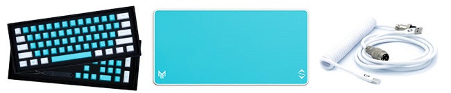 また、同じくスカイブルー×ホワイトが美しいキーキャップセットや、キーボードとセットで使いたいマウスパッドやコイルケーブルもラインナップ。