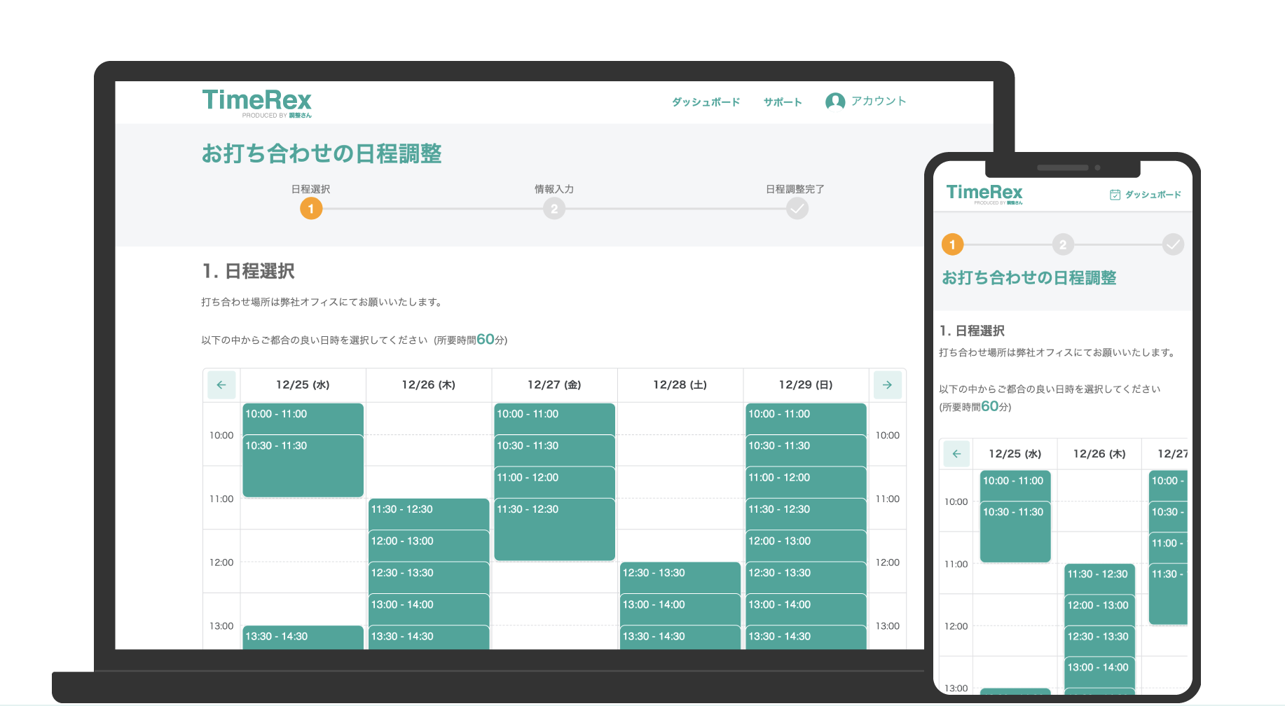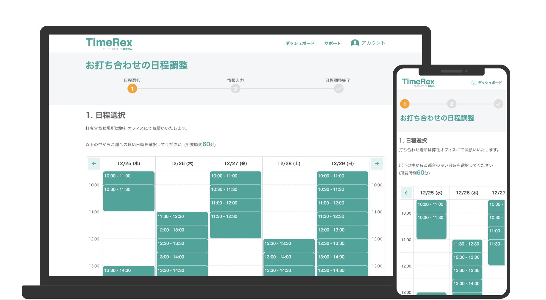 ビジネス向けの日程調整自動化SaaSで、2020年1月にサービスを開始。登録者数は2023年9月に累計で19万人を超えました。「TimeRex」は、ユーザーが日程候補のURLを送信し、相手に希望の日時を選んでもらうという仕組みで、何度もメールで日程調整のやりとりをする必要がないことが特長です。また、Googleカレンダーなどや複数の営業ツールとの連携が可能で、日程調整に必要な10以上の工程を自動化します。これまで手作業で行っていた細かな作業を自動化して、効率化と生産性の向上を実現します。URL:https://timerex.net/