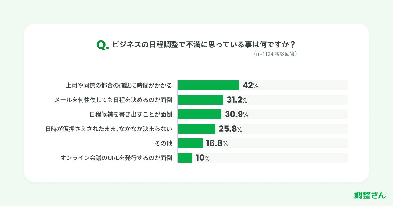 調整さんユーザーアンケート 仕事の日程調整の不満 4割強が「上司など都合確認に時間がかかる」