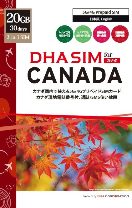 株式会社DHA Corporation (本社:東京都港区、代表取締役:鄧嘉堂・菊地華絵) は、カナダ国内電話&SMS使い放題/日本含む30か国・地域*1000分無料国際電話対応のDHA SIM for Canada: 20GB 30日を、8⽉23⽇(金)よりビックカメラ、ヨドバシカメラの各店舗・同オンラインショップにて販売開始いたしました。国際電話無料*に加えて、データ容量も大容量の20GB。旅にもっと快適、もっと安心を。