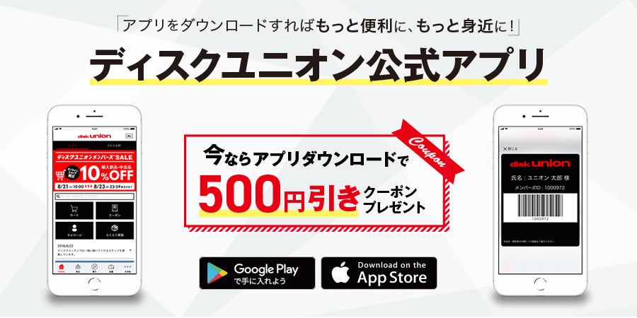 まだメンバーズにご登録がない方は、この機会にディスクユニオン公式アプリをダウンロードし、ご登録ください。既にカードをお持ちの方も、アプリのご利用をお勧めいたします。