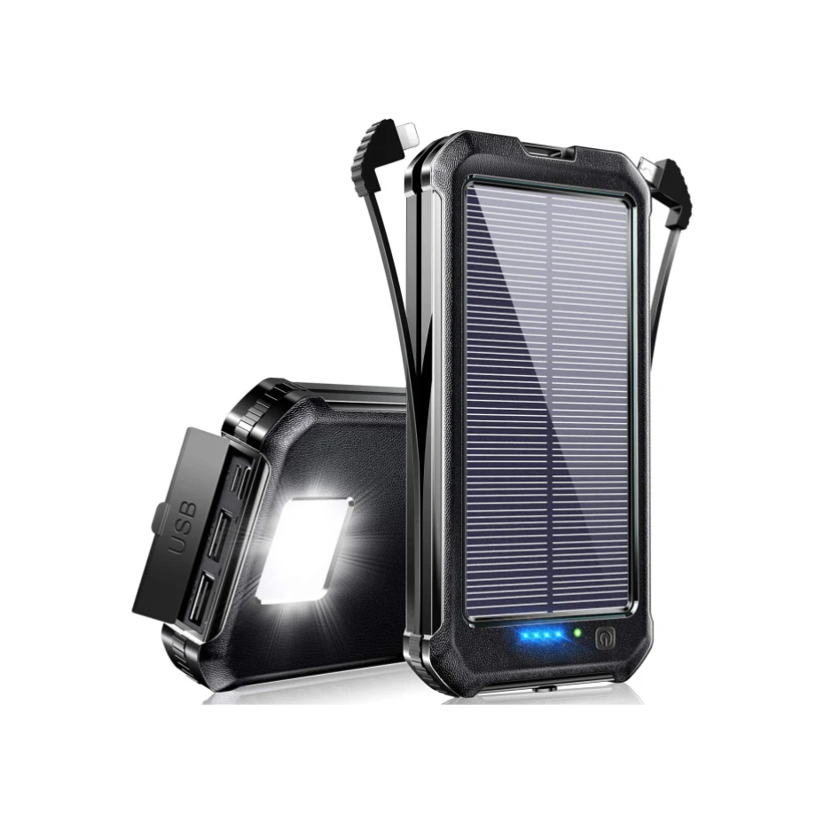 スマートフォンを日常的に使う方にとって、非常時の持ち出し袋に1つは用意しておきたいモバイルバッテリー。「MicroUSB」「Type-C」の2種類の入力ポートと2つのUSB出力ポートを備え、2種類のケーブルも内蔵しています。アダプターを介した充電が出来ない環境で重宝するソーラー充電に加え、LEDライトやIPX6防水機能を有しており、マルチに活躍するモバイルアイテムです。
