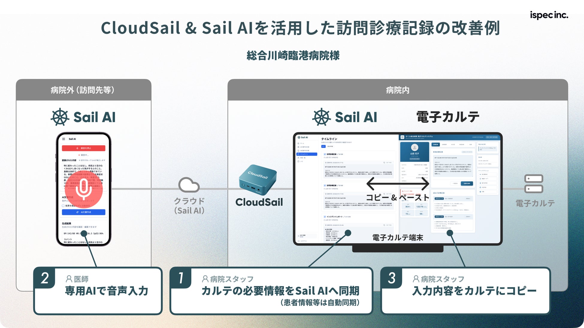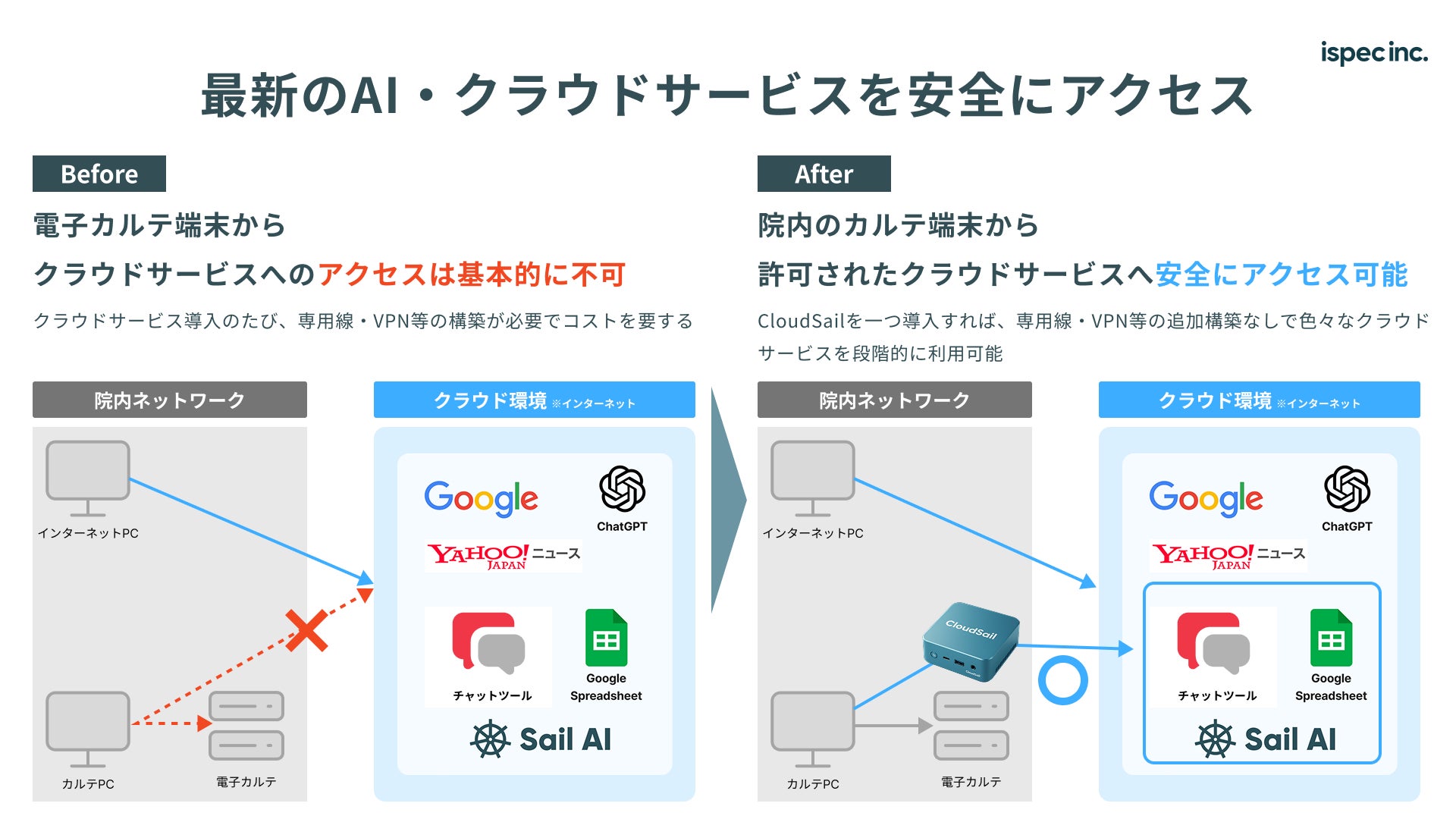 株式会社ispec(本社:東京都品川区、代表取締役社長:谷村 朋樹、以下当社)は、オンプレミス環境(院内サーバー設置型システム)を中心に運用される医療機関向けに、クラウドDX基盤「CloudSail(クラウドセイル)」の提供を開始しました。