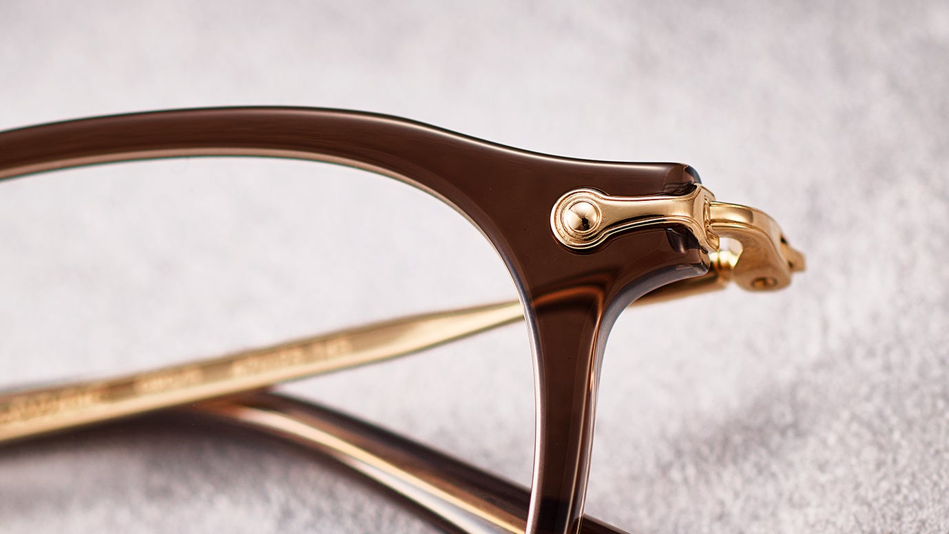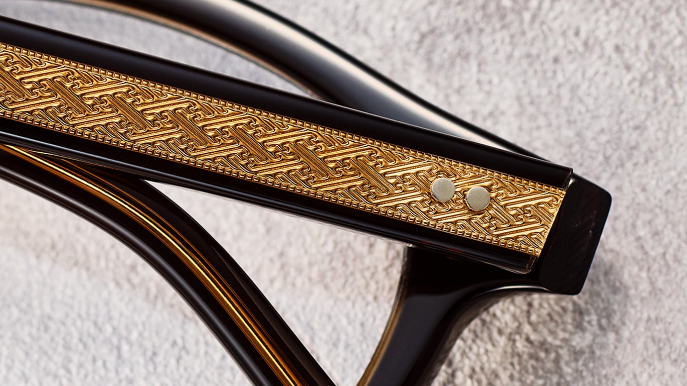 テンプル、ブリッジ、ヨロイは、アイヴァン社が得意とする日本の伝統的文様をモチーフにしたオリジナル柄の彫金を施しました。ブリッジは、ヴィンテージ感のあるマンレイ山のデザインをベースに、高さを抑えた緩やかなカーブで再構築。クラシックとモダンが調和した独特な表情を生み出します。