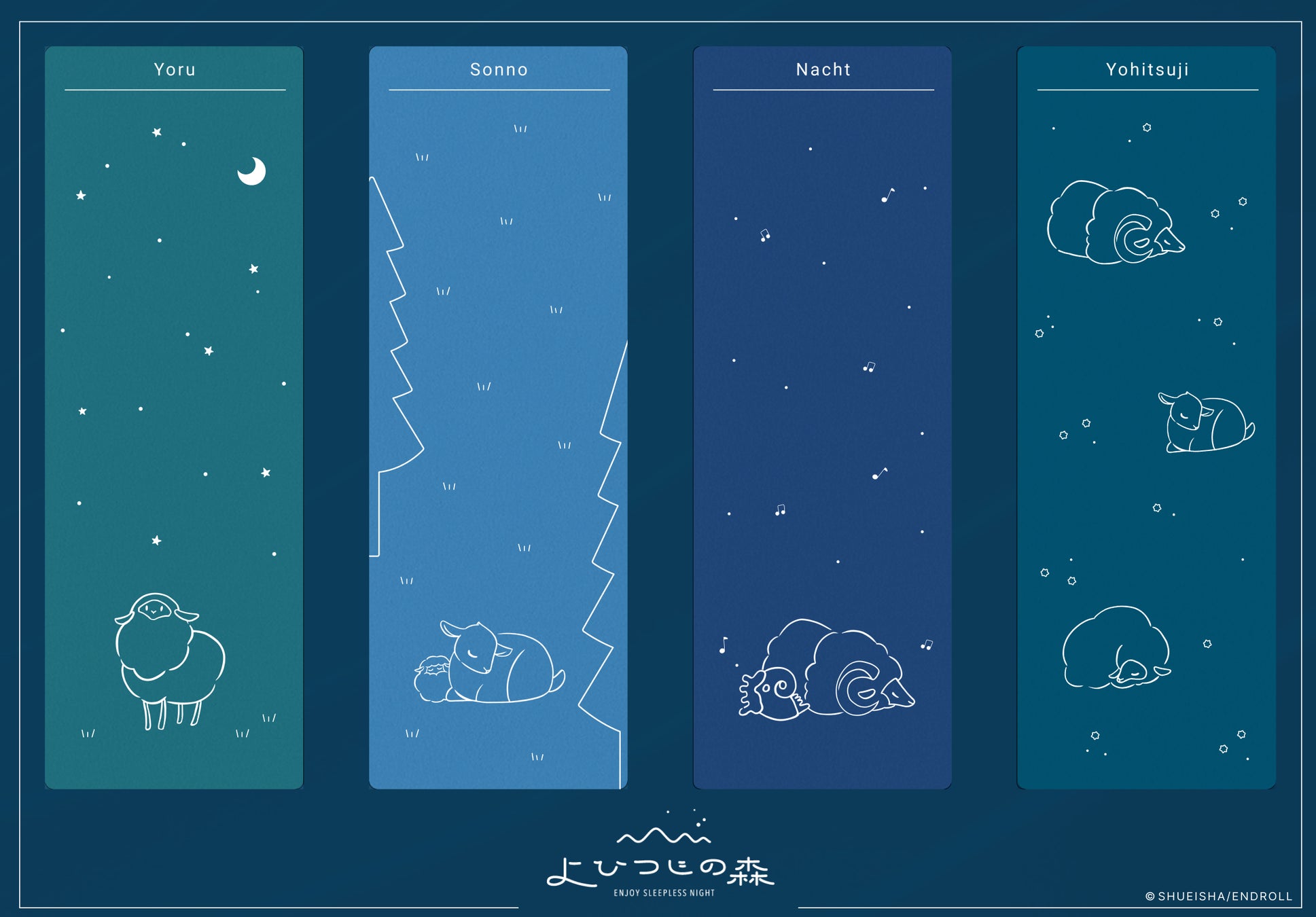 「睡眠図書館」では、「Theater Zzz」内の茶屋「CHASURU」が提供するリラックスティーを片手に、書き下ろしのオリジナル短編ストーリーで『よひつじの森』と、その世界観を体験いただけます。また、来場者プレゼントとして、その場で『よひつじの森』をダウンロード、または『よひつじの森』LINE公式アカウントの登録をしてくれた方にオリジナルグッズ「よひつじたちの栞(しおり)セット(4種)」のプレゼントをご用意しています。