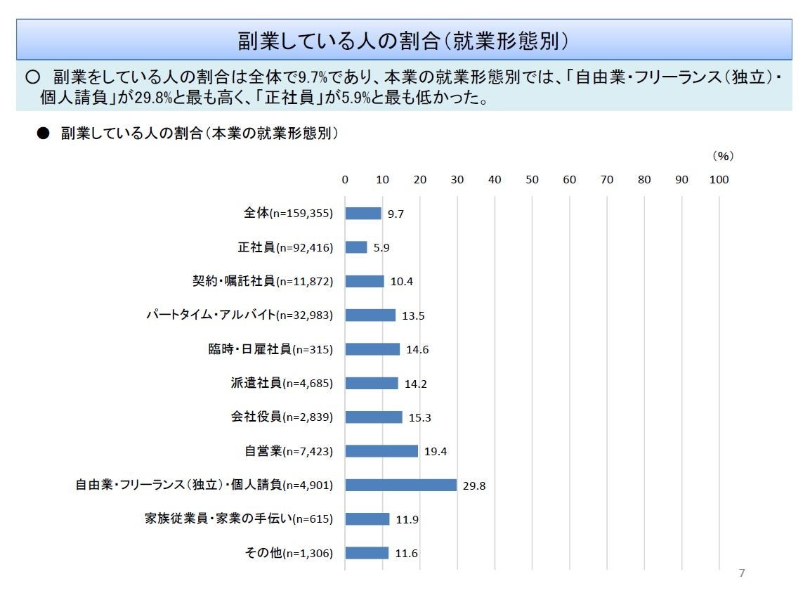 まだまだ世間的に副業をしている人は少ない中、クリエイターでは29.4%の人が『副業をしている』ということが分かります。