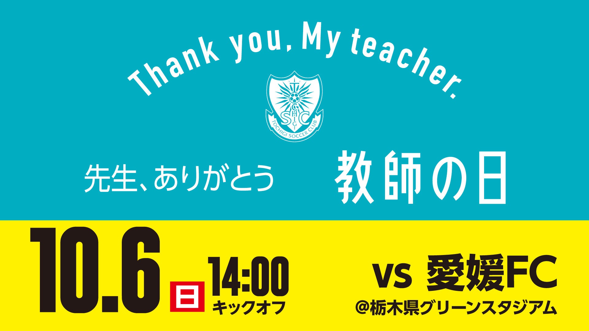 いつも栃木SCを応援いただきありがとうございます。10月6日(日)愛媛FC戦にて「教師の日」の開催が決定いたしましたのでお知らせいたします。