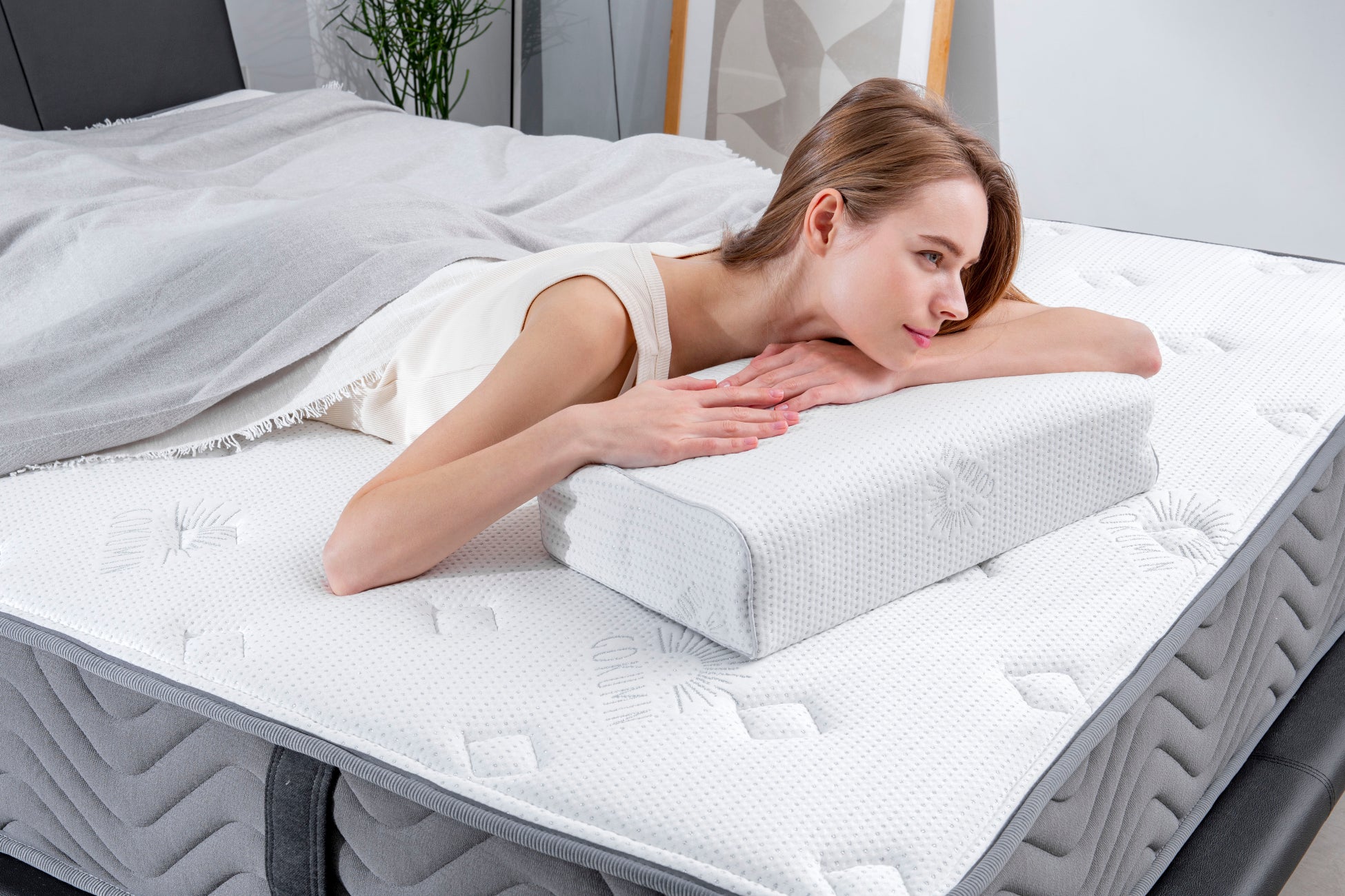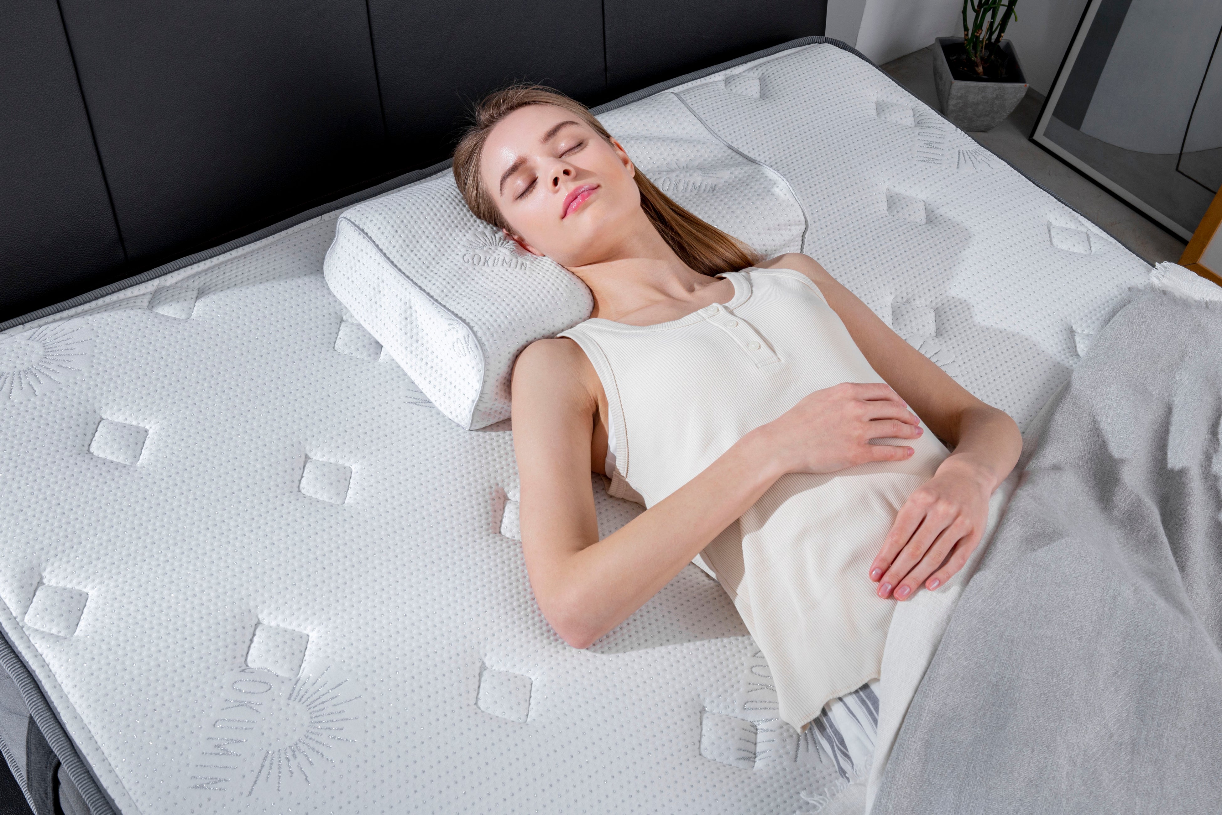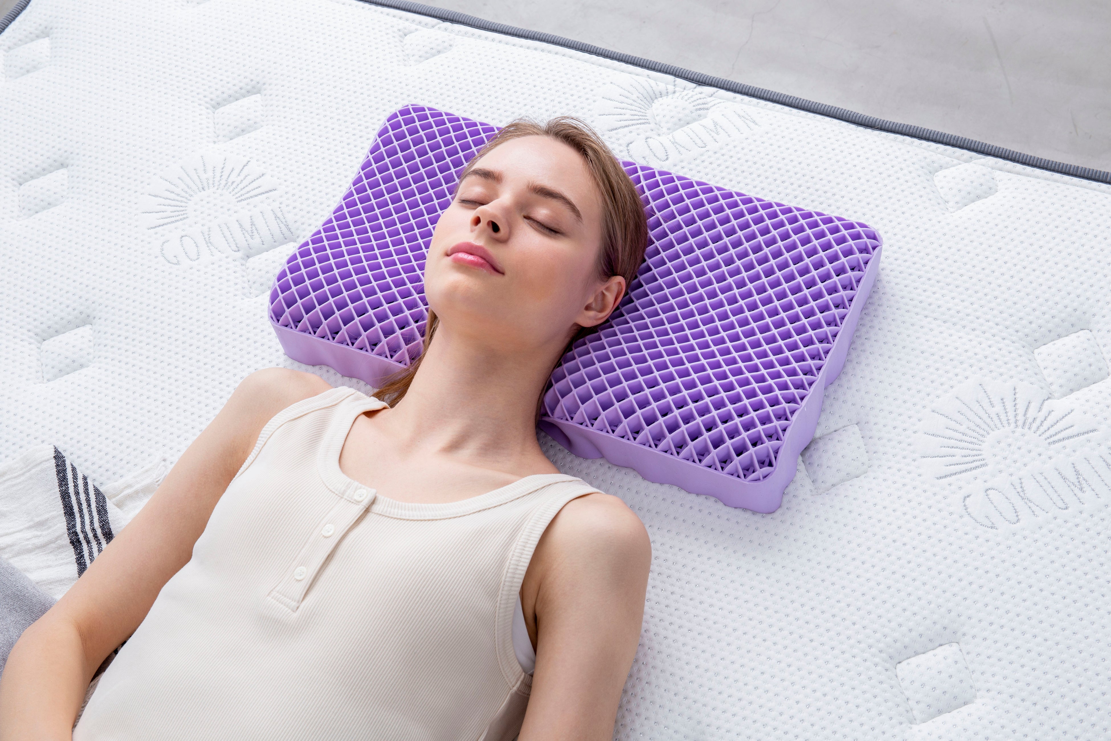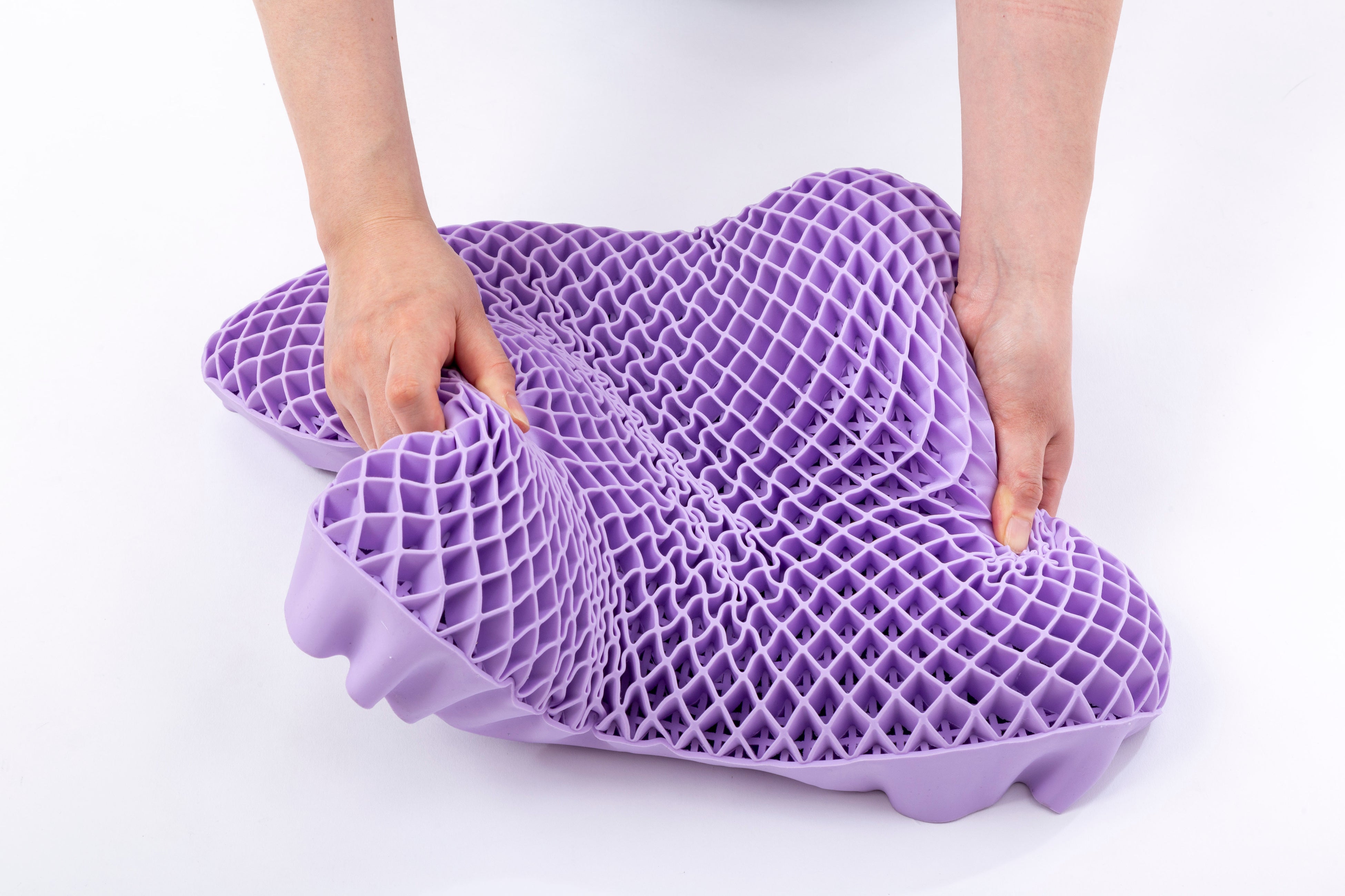 1.新感覚の高機能ジェル素材が、宙に浮いたような無重力の寝心地を実現。医療器具にも使用されるTPE(熱可塑性エラストマー)素材は、丈夫で柔らかく、しなやかな弾力性があるのが特徴で、首や頭の形状にも吸い付くようにフィットします。本体形状は体圧を効果的に分散する特殊立体3層構造。密度・大きさの違う格子が3層になっており、柔らかすぎることなく、首や頭部をしっかり支えて体の負担を軽減、快適な寝姿勢を実現します。