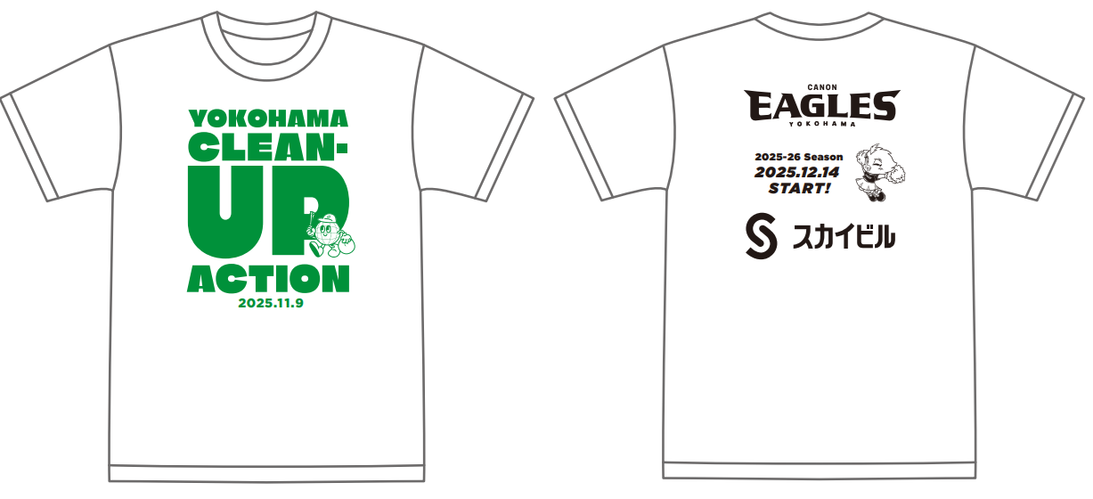スカイビル周辺、及び横浜駅東口周辺を、イーグルスの選手と共に清掃(ごみ拾い)いたします。参加者へは本イベントのユニフォームとして「オリジナルTシャツ」をご用意しております。(イベント終了後、お持ち帰りいただけます)。