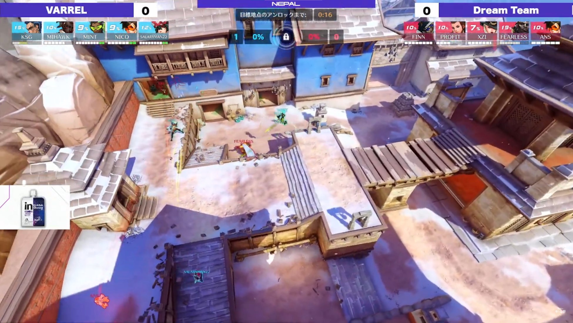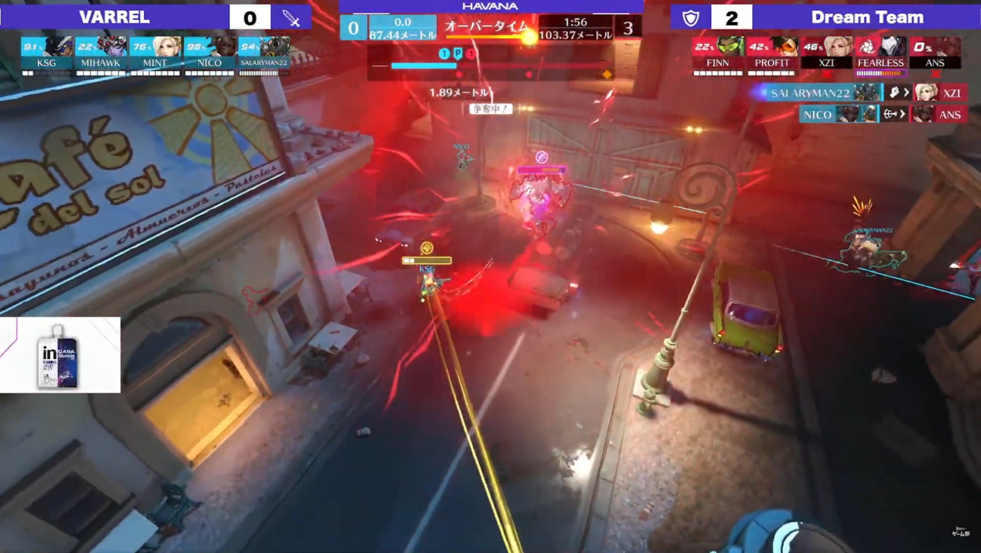 ハンゾー、ウィドウメイカーの2スナイパー構成として相性の悪いウィンストンを採用しているにも関わらず、個々人の圧倒的な対面力とヘッドショット率でVARRELが得意とするチームプレイを破壊し、2マップ目もDream Teamが取得しました。