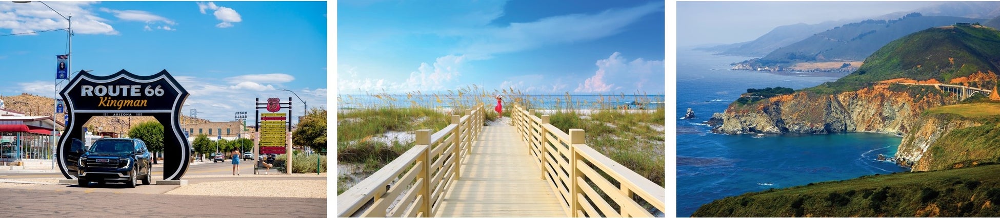 2026年には、アメリカの母なる道と云われる「ルート66」が生誕100周年を迎えます。シカゴからサンタモニカまでを結ぶこの伝説的なハイウェイは、かつて西部へと向かう移住者たちの主要ルートとして機能し、沿道のガソリンスタンドやレストストップ、小規模ビジネスの発展を支えてきました。ネオン看板や個性的なモーテル、レトロなロードサイドアトラクションが点在するこのルートは、書籍や映画、音楽の中でも頻繁に登場し、アメリカで最も有名なハイウェイのひとつとして知られています。音楽好きは、「ブルース ハイウェイ(ミシシッピ ブルーストレイル)」がおすすめです。テネシー州メンフィスからルイジアナ州ニューオーリンズまで続くこのルートでは、ブルース、スピリチュアル、ゴスペル、ソウル、ジャズといったアメリカ音楽のルーツを巡ることができます。ミシシッピ・デルタ地域に息づく、音楽の歴史や文化を深く知ることができるロードトリップとなっています。五大湖地域からメキシコ湾岸までを結ぶ壮大なルート「インターステート65号線」のドライブでは、アラバマ州の風光明媚なトレイルやテネシー州やケンタッキー州の隠れた名所を探索することができます。単なる移動手段ではなく、沿道に広がる美しい景色や歴史的なランドマーク、アウトドアアドベンチャーを満喫することができる、まさに冒険へのゲートウェイとなるルートです。太平洋岸を巡る爽快な旅を体験できるのが、カリフォルニア州の「パシフィックコーストハイウェイ(PCH)」です。サンフランシスコからサンディエゴまでの海岸線を走りながら、サンタクルーズ、ビッグサー、モントレー湾、サンルイスオビスポ、サンタバーバラ、ロサンゼルスなどの名所を巡ることができます。