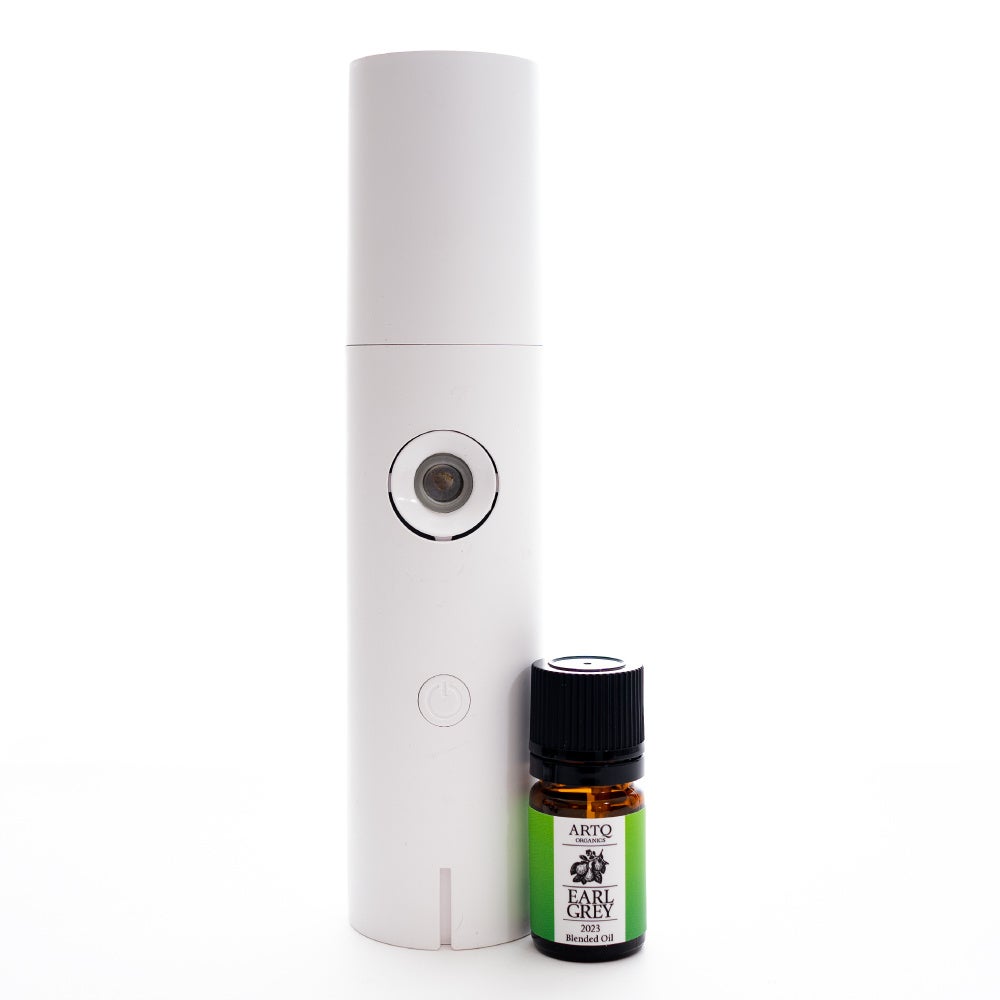 精油ボトルをそのままセットするだけ!どこへでも持ち運べる大変便利なディフューザーと「アールグレイブレンド」のお得なセットです。