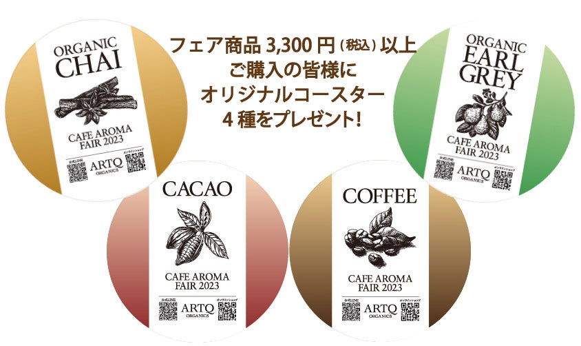 香りを楽しむカフェアロマ ~CACAO/COFFEE/CHAI/EARL GREY~ 『ARTQ ORGANICS CAFÉ AROMA FAIR 2023』 2月7日(火)より開催中