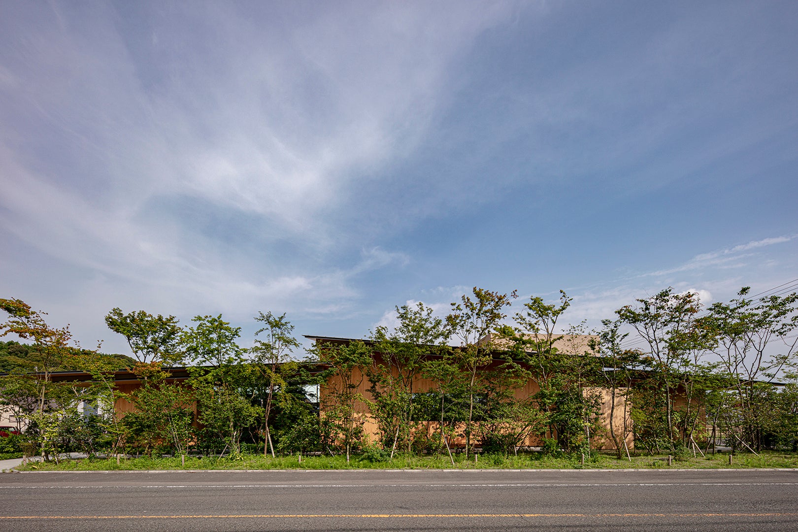 この眼科クリニックは、待ち時間を単なるスクリーンに向かう受動的な時間ではなく、意味のある体験として過ごす時間へと再解釈することを目指した。建物は単一の大きなボリュームとなることを避け、天井高さの異なる屋根を分節することで構成されている。これにより、公園のように開かれた空間と、落ち着いた親密な空間が共存する。屋根の間に挿入された庭は柔らかな自然光を内部へ導き、内外の境界を緩やかに曖昧にする。動線となる廊下も滞在の場として機能し、屋内外に設けられた座席によって、患者はそれぞれの居場所を選びながら穏やかな時間を過ごすことができる。地域に開かれた環境の中で、安心感と静かなプライバシーを両立する医療空間を実現している。