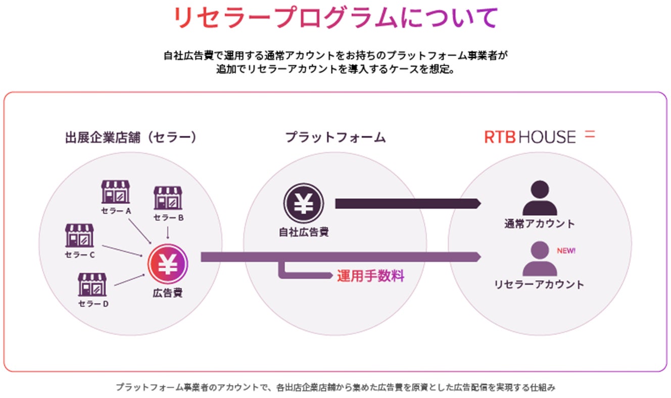 最先端のAIディープラーニング(深層学習)によるデジタルマーケティングテクノロジーを提供するRTB House(本社:所在地-ポーランド・ワルシャワ、社長-ロバート・ディチコフスキー、日本支社:東京都品川区)は、eコマースサイトやトラベル(航空券、宿など)サイトなどのプラットフォームを運営する事業者が、そのサイト内に出店する企業(セラー)に対してオンライン広告商材を提供できるサービス「出店企業向け広告配信サービス『リセラープログラム』」を立ち上げ、1月より本格的にプラットフォーム事業者へ提供を開始します。これにより、プラットフォーム事業者は、出店企業のオンライン広告配信の運用業務を受託することが可能になります。