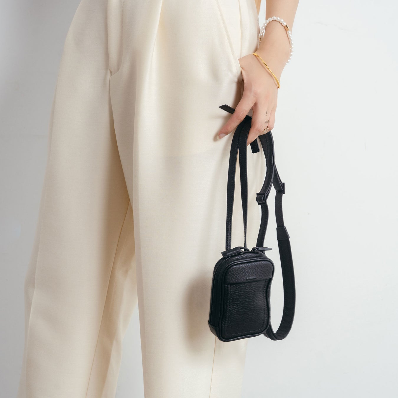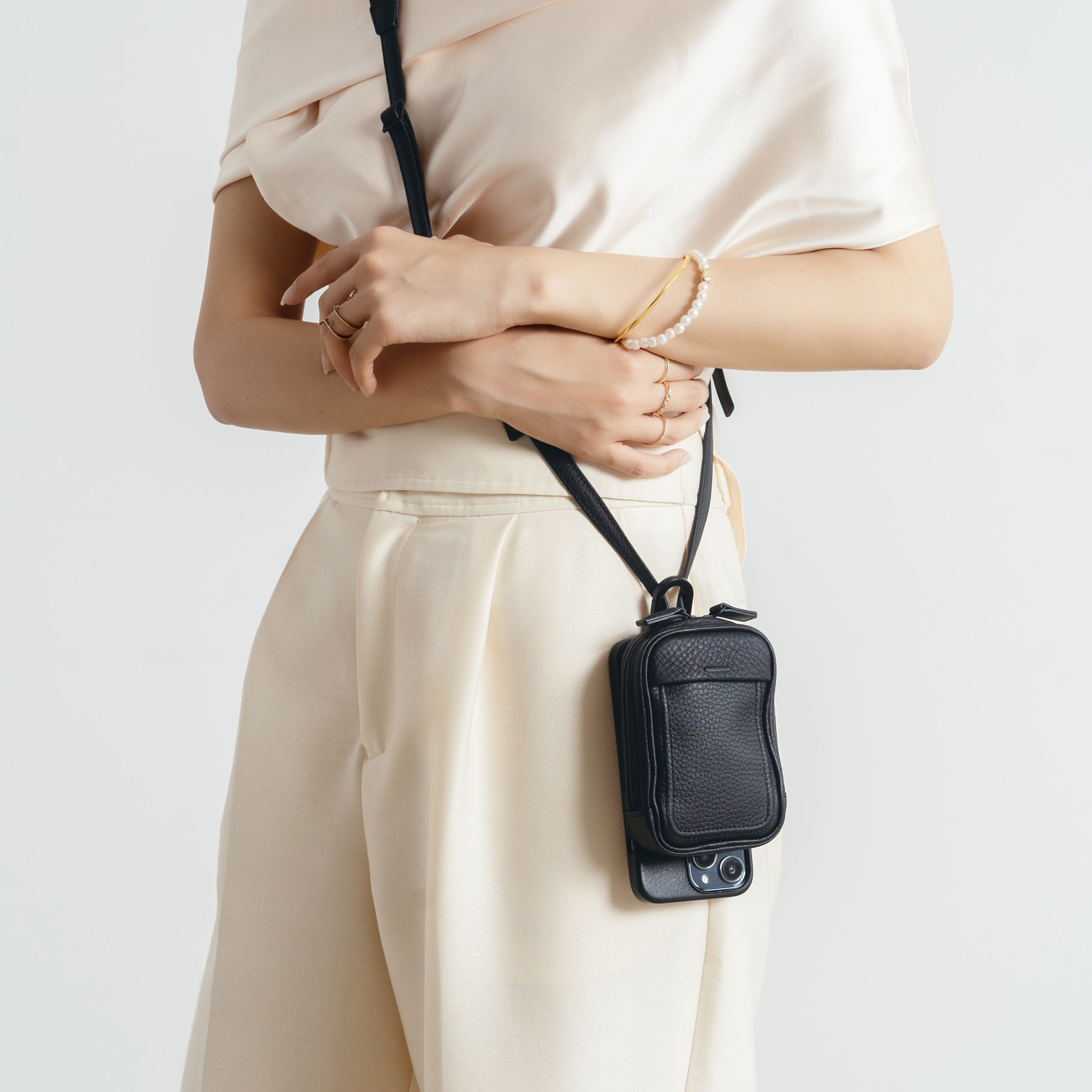 既存サイズのバッグの構造やシルエットなどアイコニックなデザインを反映し、アクセサリー感覚で楽しめる上質なレザースマホショルダーに仕立てました。