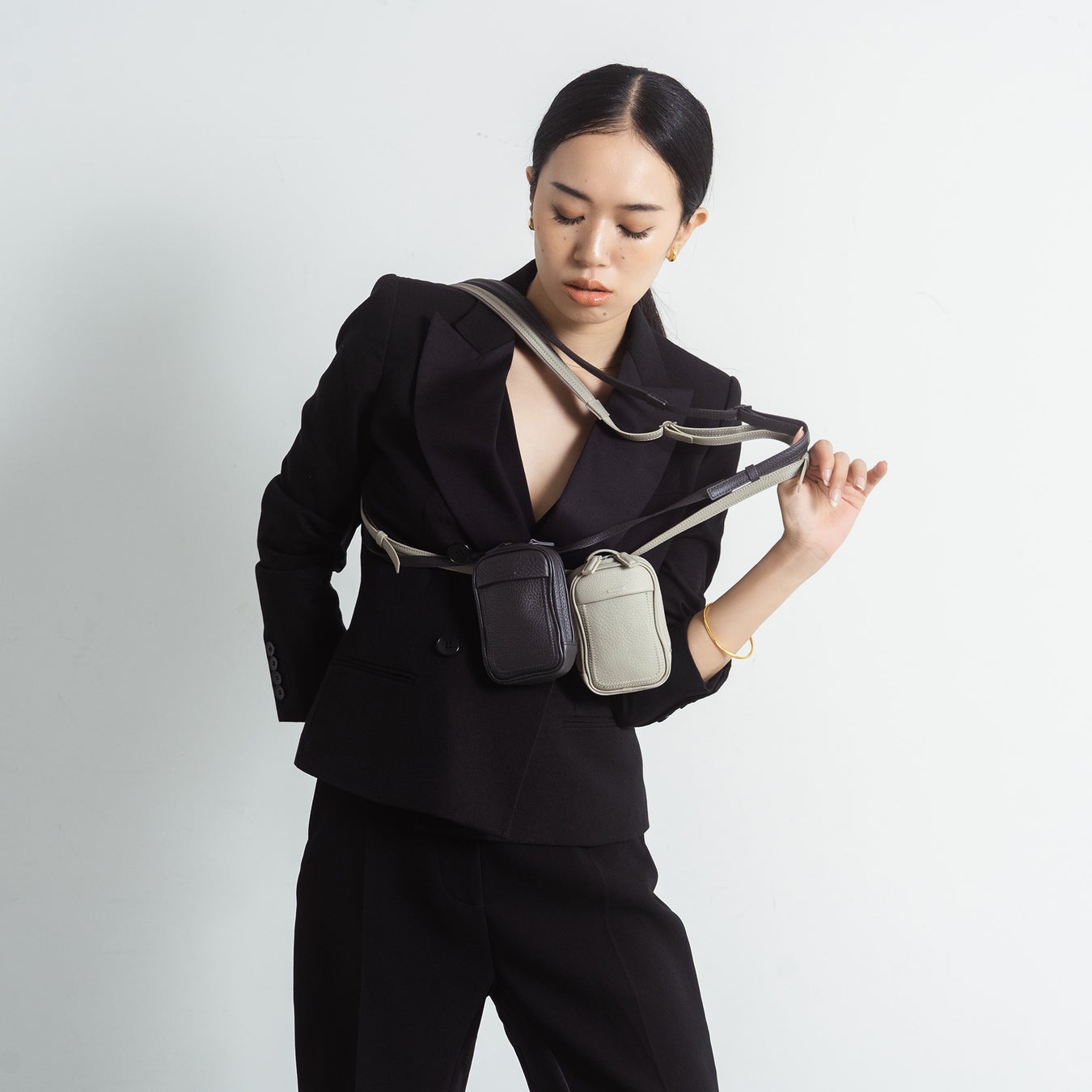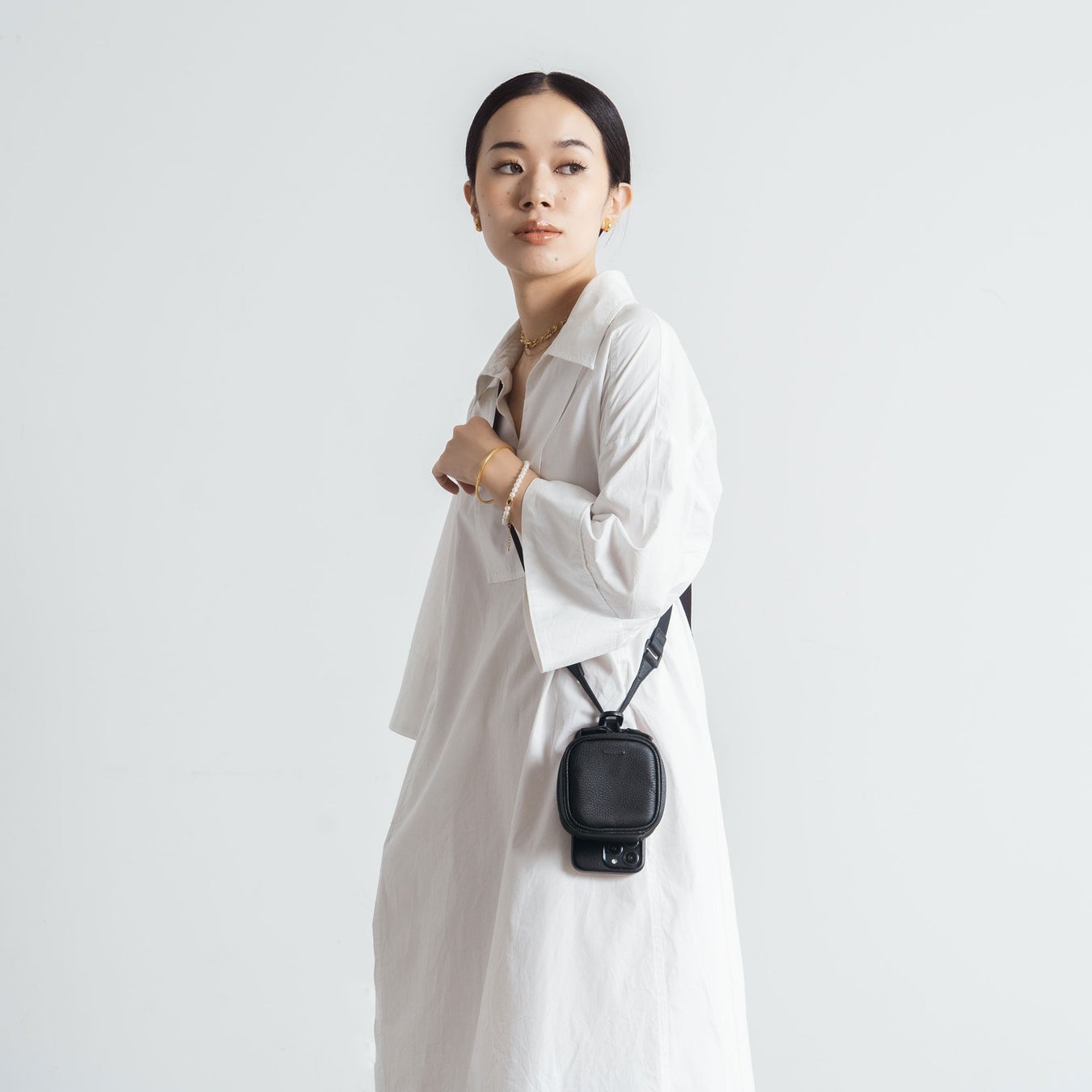 「iPhoneが背負うバッグ」をイメージし、スマホショルダーとして持ち運べる定番レザーバッグの最小サイズを開発。