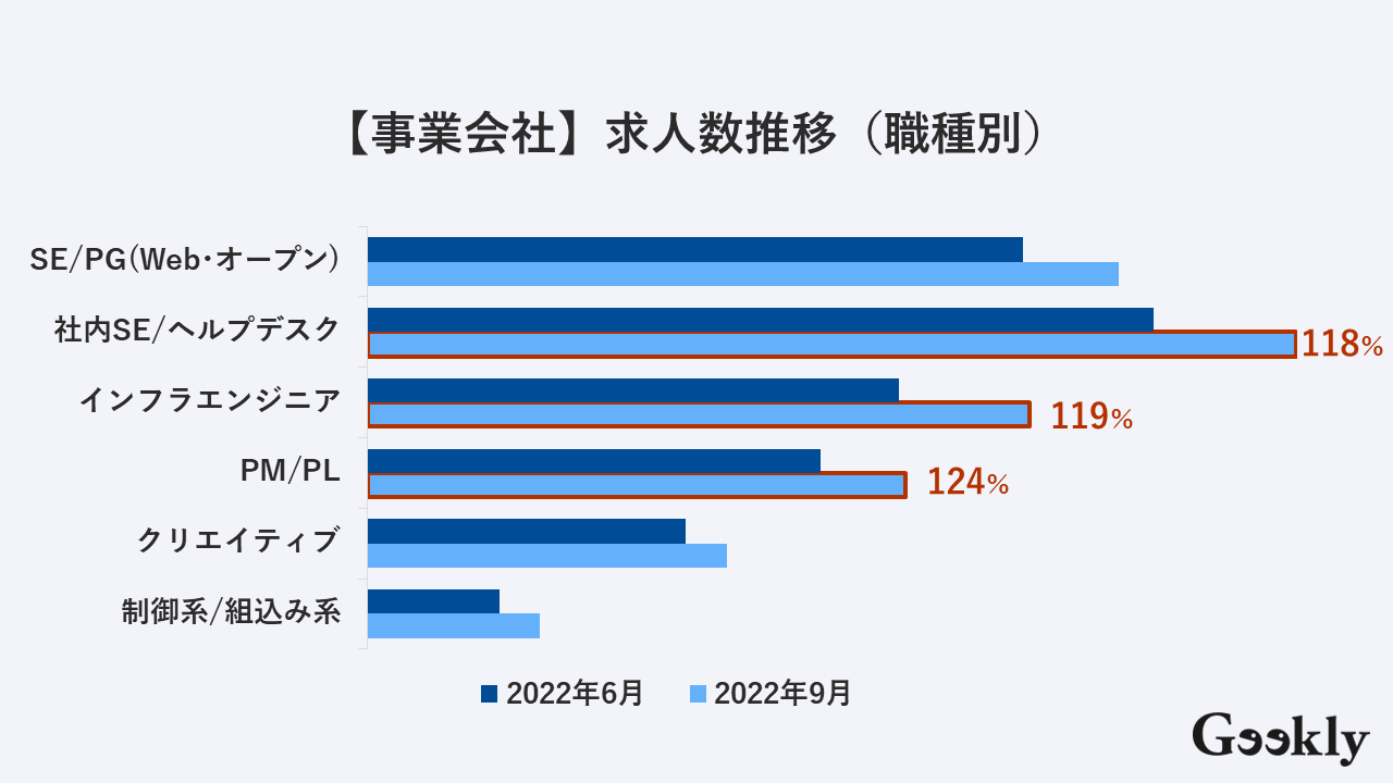事業会社のIT求人数は前四半期比124%、IT人材の獲得競争が激化で「要件緩和」がトレンドに| IT転職エージェント「ギークリー」2022年7~9月 【IT転職市場レポート】を公開