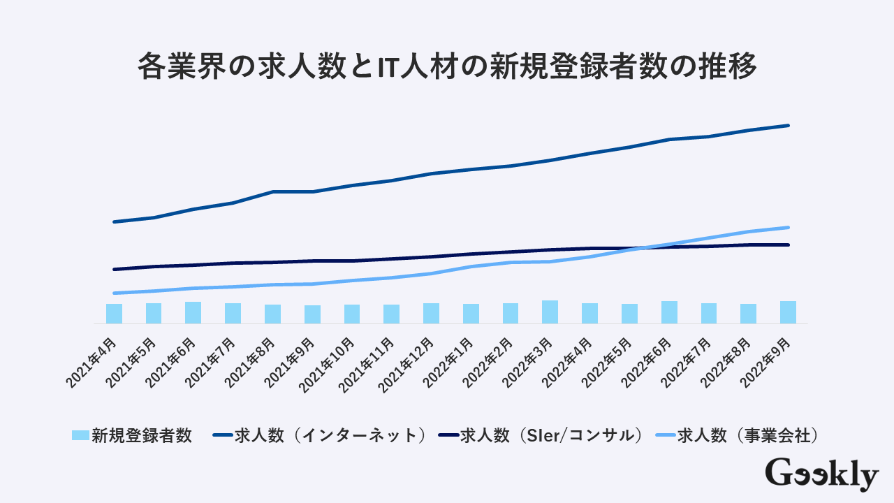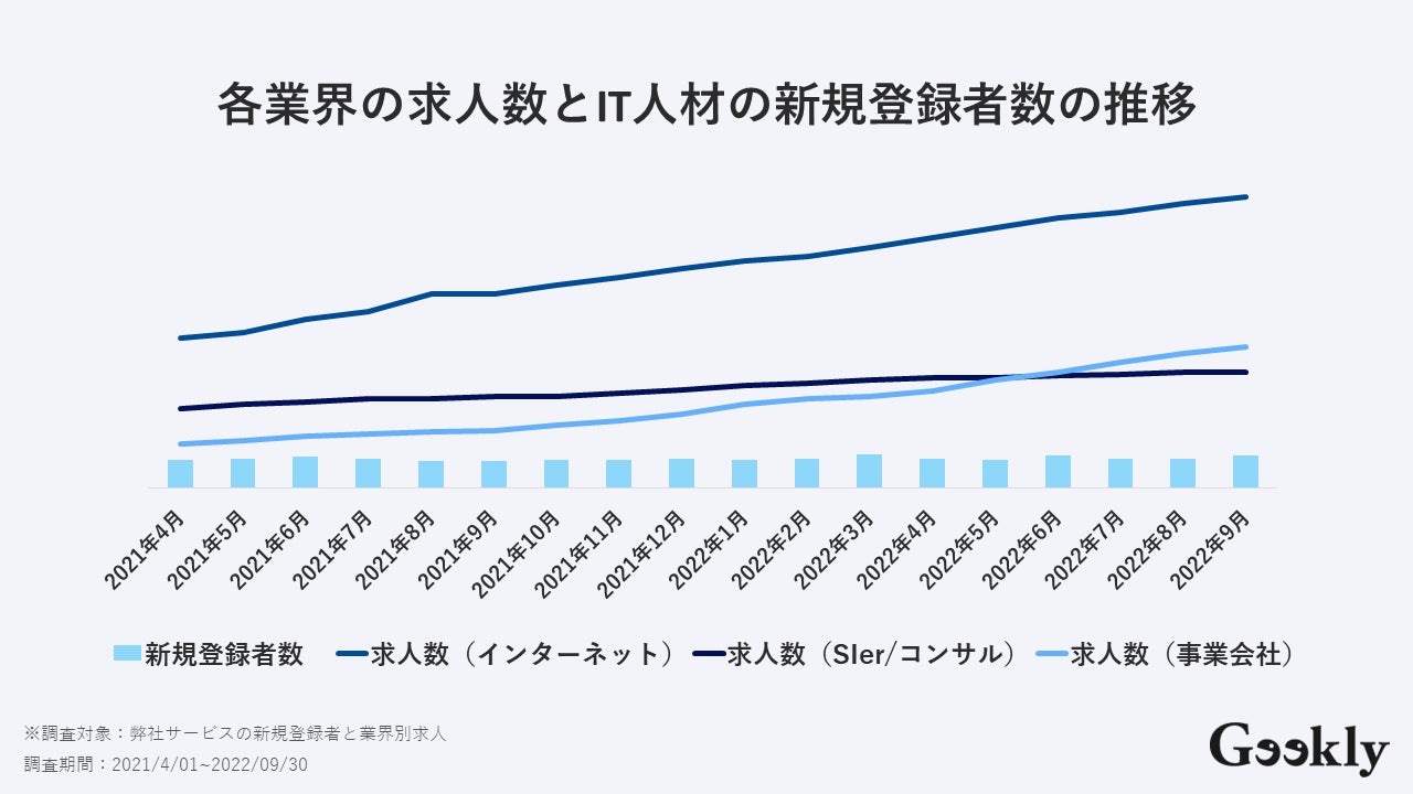 IT/Web/ゲーム業界専門の転職エージェントである株式会社ギークリー(所在地:東京都渋谷区、代表取締役社長:奥山貴広)は、2022年7~9月にギークリーを利用していただいた企業様と転職希望者様のデータからIT転職市場の動向を調査し、レポートにまとめました。