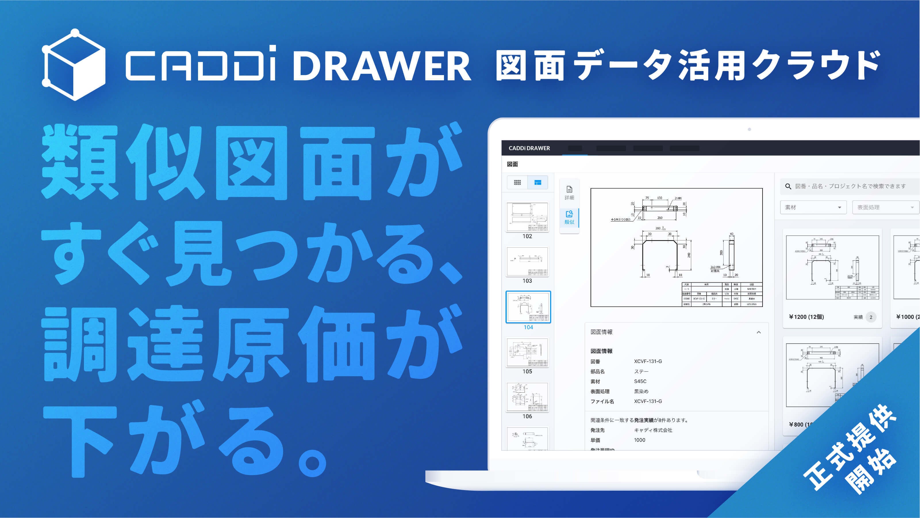 「モノづくり産業のポテンシャルを解放する」をミッションに掲げるキャディ株式会社(本社:東京都台東区、代表取締役:加藤 勇志郎)は、新サービスとして、製造業における最重要データである図面の活用を軸にデジタルトランスフォーメーション(以下、DX)を支援する クラウドシステム『CADDi DRAWER』(キャディドロワー)を6月22日(水)より正式に提供開始します。