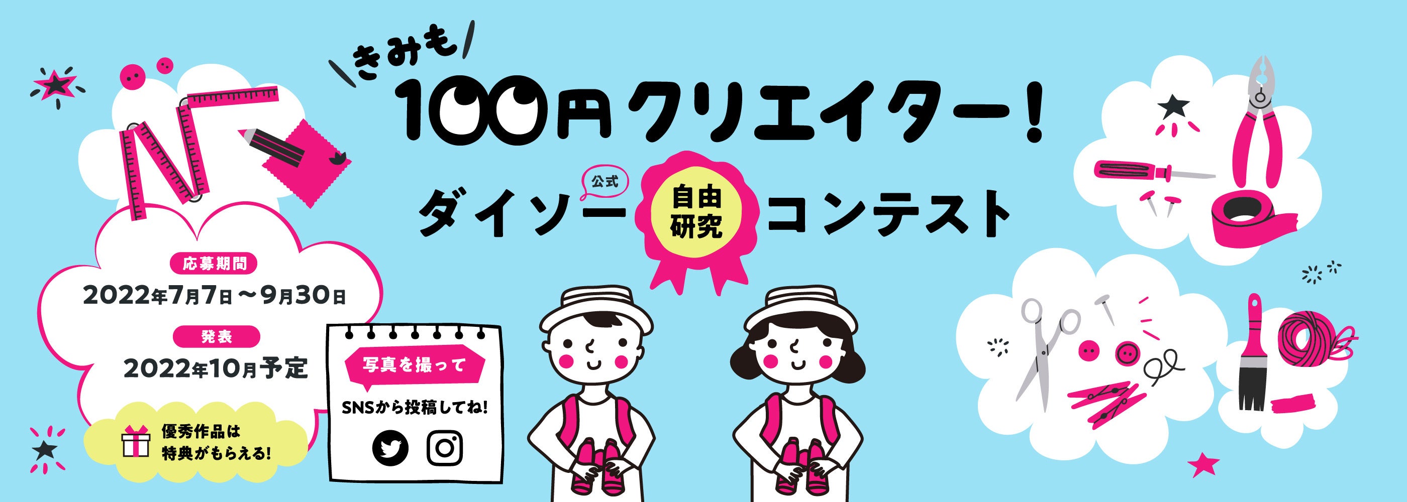 株式会社大創産業(広島県東広島市 代表取締役社長:矢野靖二、以下「大創産業」)は、DAISO(ダイソー)商品を使用したDIYオリジナル作品の写真で応募できる「ダイソーDIYフォトコンテスト」を、2022年7月7日(木)から開催します。本コンテストは、創業50周年企画として、当社が初めて行う参加型のコンテストです。コンテストの開催を通して、お客様のお買い物が、アイディア広がる楽しい時間になることを目指しています。