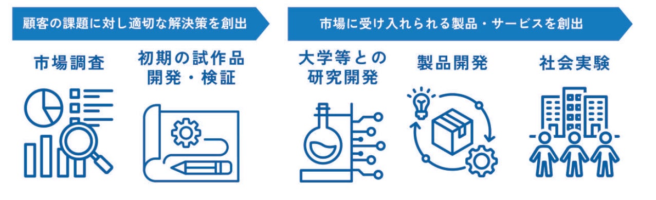 新製品や新サービス開発、それに伴う実証実験に取り組む事業