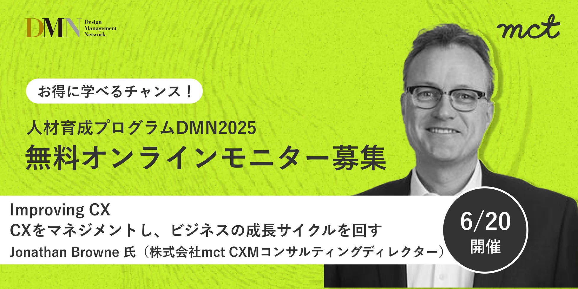 2025年度から新しい「DMN(デザインマネジメント・ネットワーク)」が始まりますが、このたび、オンライン開催する講座の中から限定で、オンラインモニターの無料招待枠を設けることになりました。