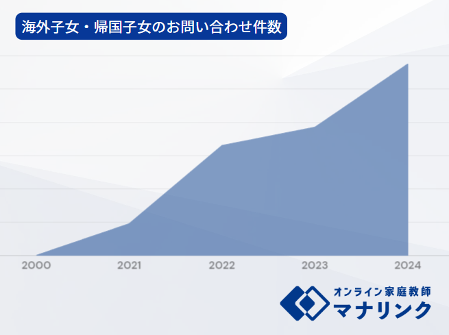 海外子女・帰国子女が利用できるオンライン家庭教師の中でも、事前にどのような先生がいるのか確認できる点やお子様と相性の良い先生と個別指導ができるなどの理由でご利用をいただいております。また、24時間対応で時差を気にせずに授業が可能となっています。2024年度の海外子女・帰国子女に関するお問い合わせ数は2021年度から約5倍になる見通しです。(※3) 私たちは今後、現地の日本人学校との提携や海外の機関との連携も視野にいれながら個々の家庭の事情に合わせた受験指導ができるように取り組んでいきます。