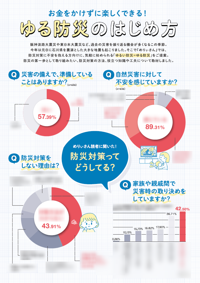 読者のアンケートをもとに、防災初心者が気軽に取り組める ”ゆるい防災=ゆる防災” の方法とアイデアをご紹介。