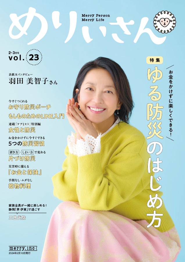 特集「お金をかけずに楽しくできる! ‟ゆる防災” のはじめ方」/表紙&インタビューは女優・羽田美智子さん/情報誌『めりぃさん』vol.23 2月10日発刊