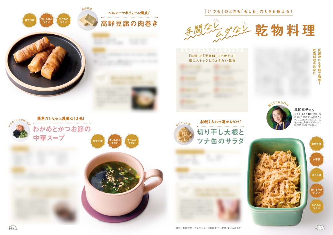 笑って、泣いて、自分を生きる(羽田美智子さん)/今すぐつくれる「お守り防災ポーチ」/もしものためのLINE入門/女性と防災/5つの防災習慣/愛犬の防災対策を考えてみた!/手間なし・ムダなし「乾物料理」