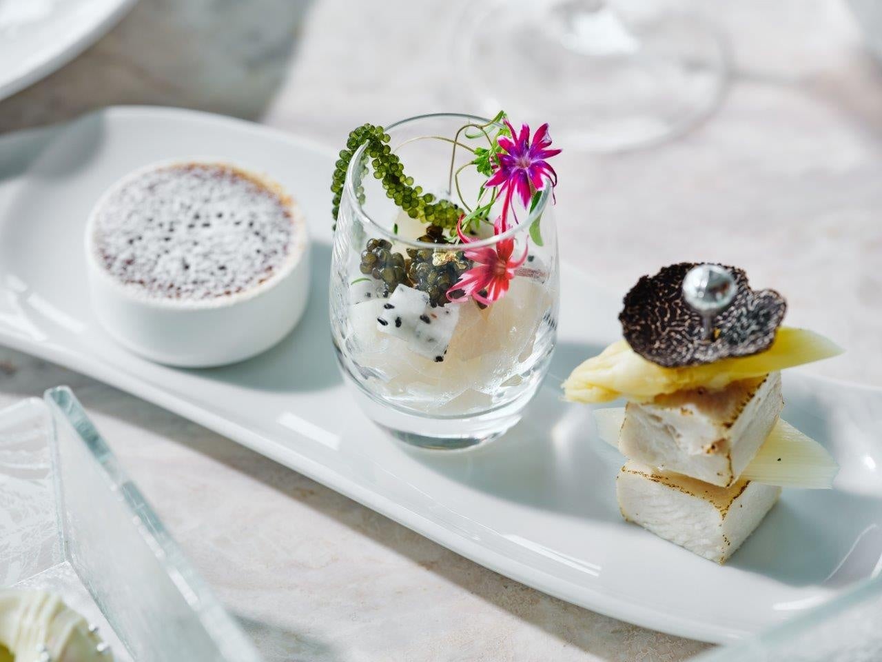 ・フォアグラ、ホワイトセサミと黒糖のクレームブリュレ