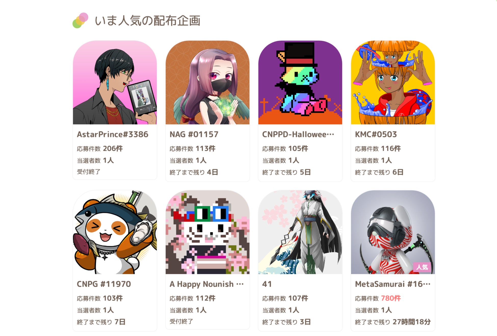配布されるNFTやALを入手したいユーザーは、どのGiveaway企画が注目を集めているか分かったり、応募条件が一目で分かったりするので、気軽に応募が可能です。