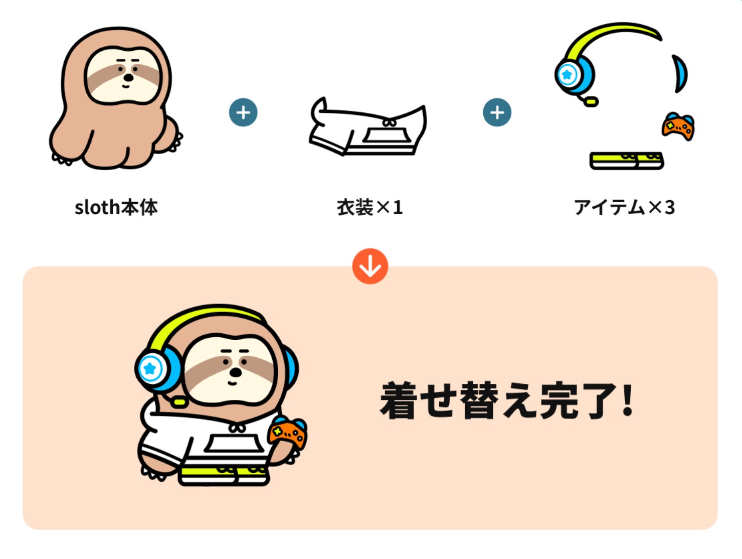 slothは、ナマケモノのキャラクターである本体NFTと、衣装NFT、アイテムNFTの3種類があり、本体に衣装とアイテムを着せて楽しめるコンテンツとなっています。