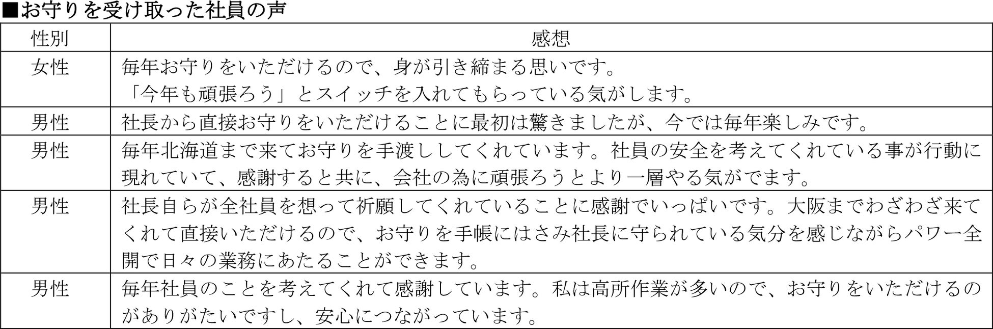 そのため震災の翌年から、商売繁盛はもちろんのこと、社員の交通安全、工事安全、家内安全、無病息災を佐々木自らが社員を代表して神田神社にて祈願し、その想いを込めたお守りを社員全員に配布するようになりました。