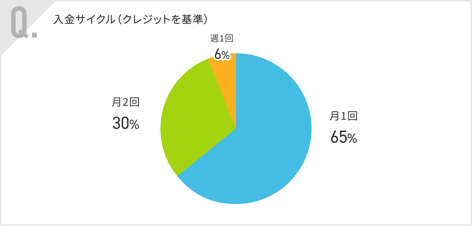 飲食店では月1回の入金サイクルを選択している店舗が多く、次点で月2回、週1回と続く結果となりました。