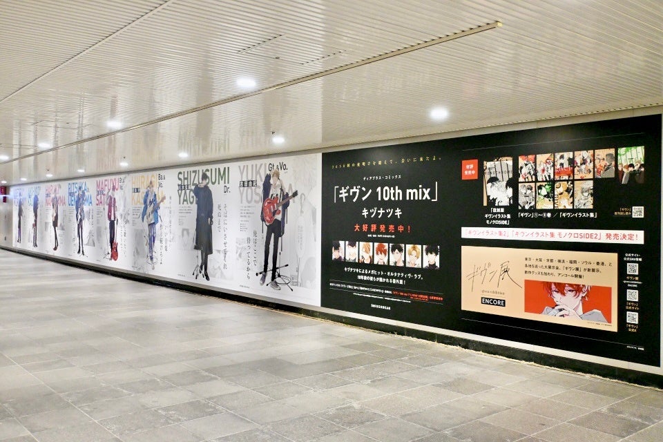 株式会社新書館は、『ギヴン』最新作となる『ギヴン 10th mix』を発売しました。これを記念し、2025年10月6日(月)より、東急田園都市線渋谷駅の道玄坂ハッピーボードと、JR大阪駅の桜橋アベニューに大型ポスター広告を掲出いたします。またクロス新宿ビジョンでは、映像広告が流れます。
