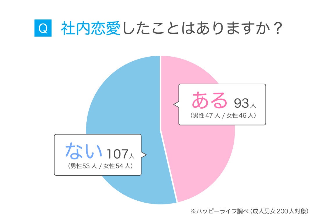 累計会員数3500万(※1)を誇る出会い・恋愛マッチングアプリ・サービス「ハッピーメール( https://happymail.co.jp/ )(運営:株式会社アイベック 本社:福岡県福岡市)」にて、成人男女200人を対象に『社内恋愛』についてアンケート調査を実施しました。