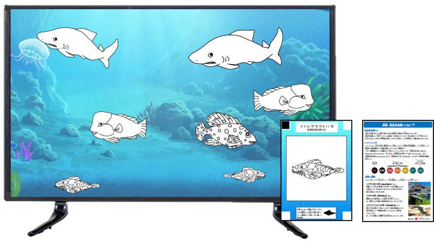 リリース以来、約1,000施設、延べ20万人に参加いただいた「おえかきパラダイス」のSDGs版です。 絶滅の危機にある海の生物のぬりえを4種類用意しました。ぬりえ用紙の裏面には絶命危惧種に関する詳しい解説を記載しています。
