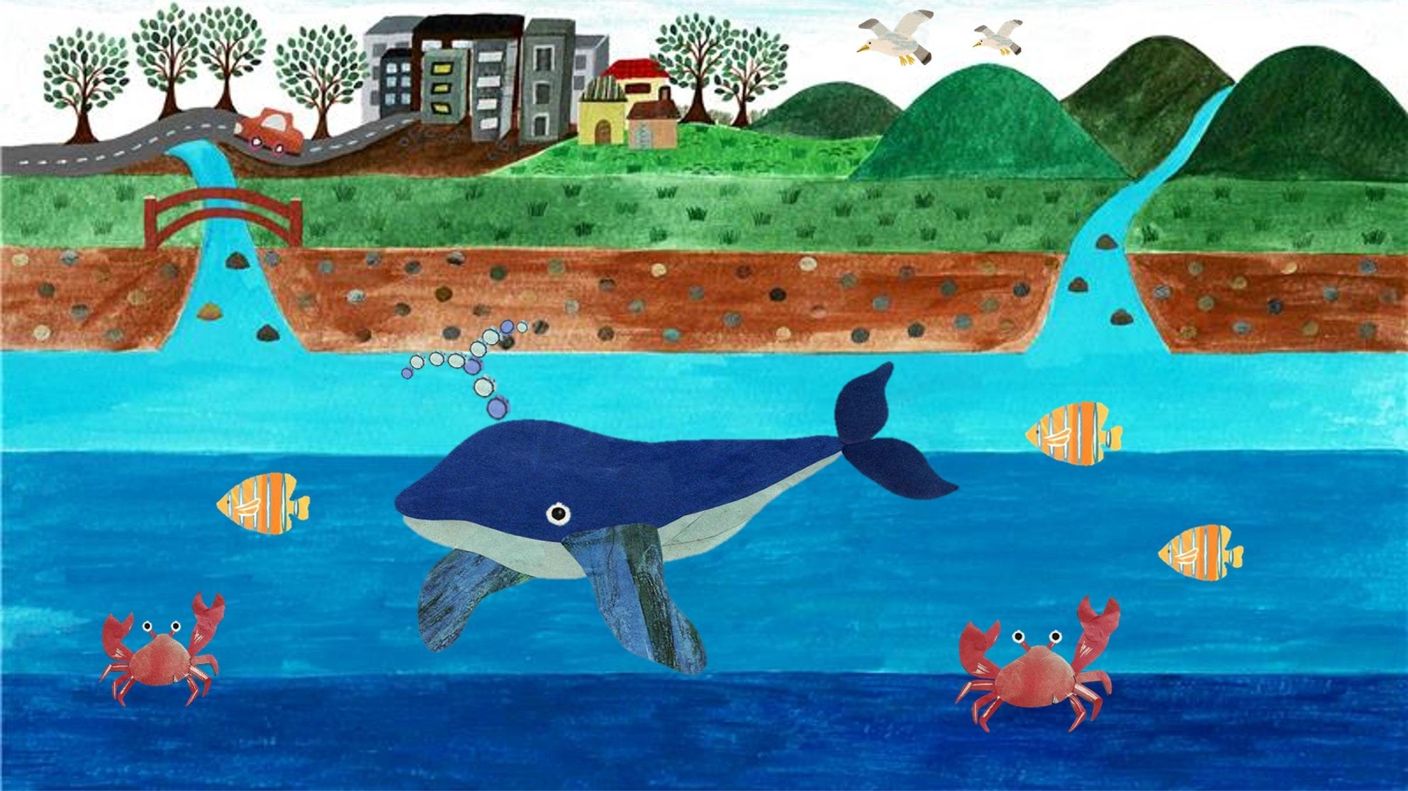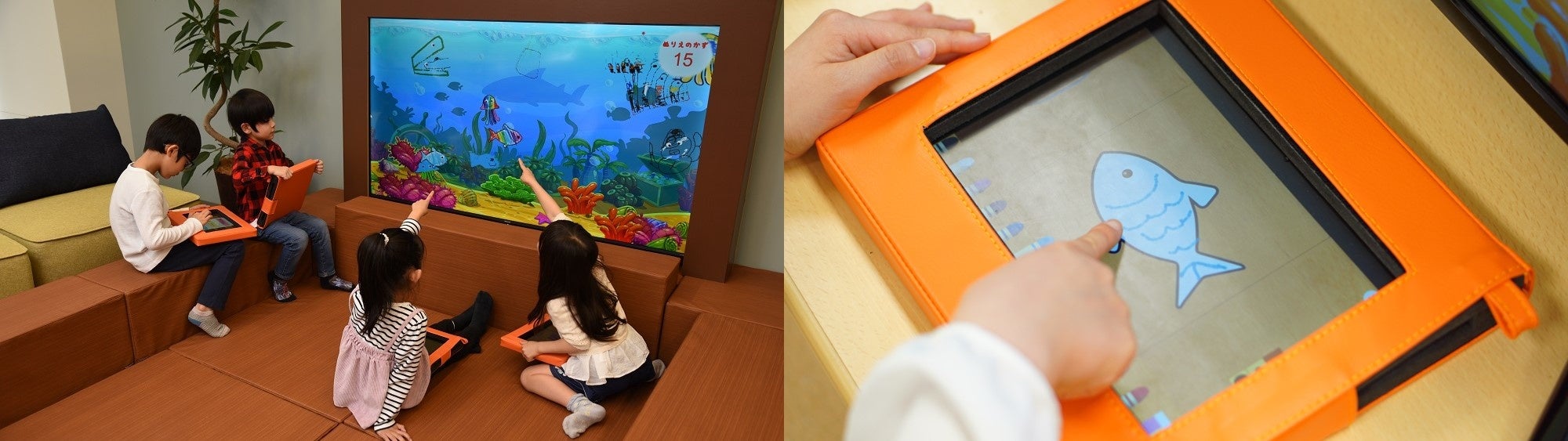 タッチディスプレイで直感的に遊びながら、海のごみ問題の理解を深めることができます。子ども同士や親子でスクリーン内のごみをタッチして消していきます。ごみが少なくなると豊かな海が少しずつよみがえります。