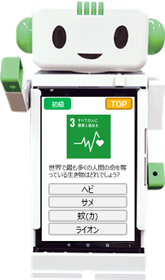 説明パネルの解説をもとに、「ロボットこくり」がSDGsに関連するクイズを出題します。難易度は初級、中級、上級の3つのカテゴリーに分かれ、子どもから大人まで利用可能です。