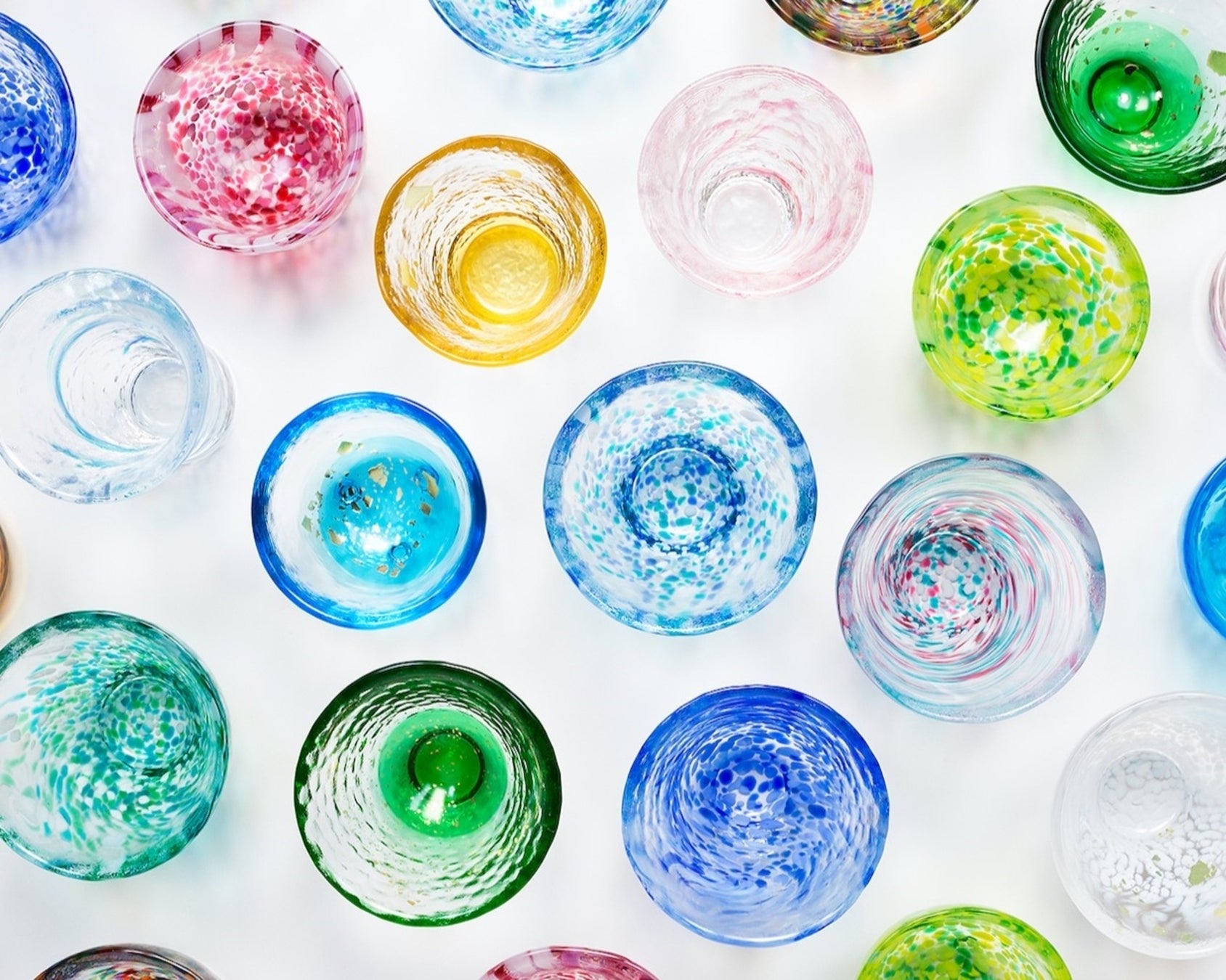 青森県伝統工芸品「津軽びいどろ」は、カラフルで美しい色合いと手づくりならではの柔らかく温もりのある風合いが持ち味の日本を代表するガラス工芸ブランドの一つです。"四季を感じるハンドメイドガラス"をコンセプトに、浮玉(うきだま)製造で培った「宙吹き」をはじめとする多彩な技法・技術と、自社で調合した100色以上の色彩豊かな色ガラスを用い、作り手である職人の想いと情熱を商品やストーリーに乗せて作り続けています。