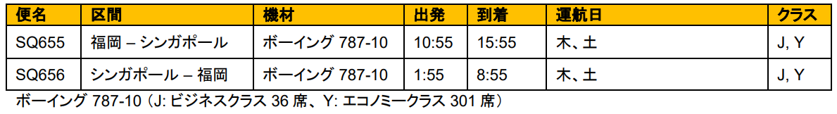 日本路線に関する運航の詳細は、シンガポール航空の公式ウェブサイトでご確認ください。