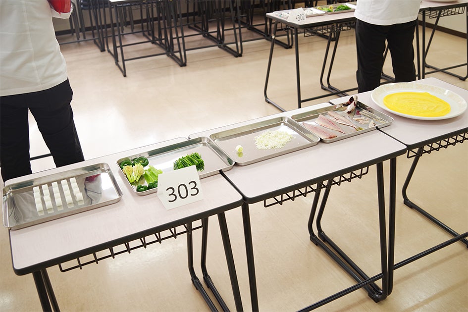 応用課題の調理(部門ごとに統一課題2作品)。味見審査も実施。