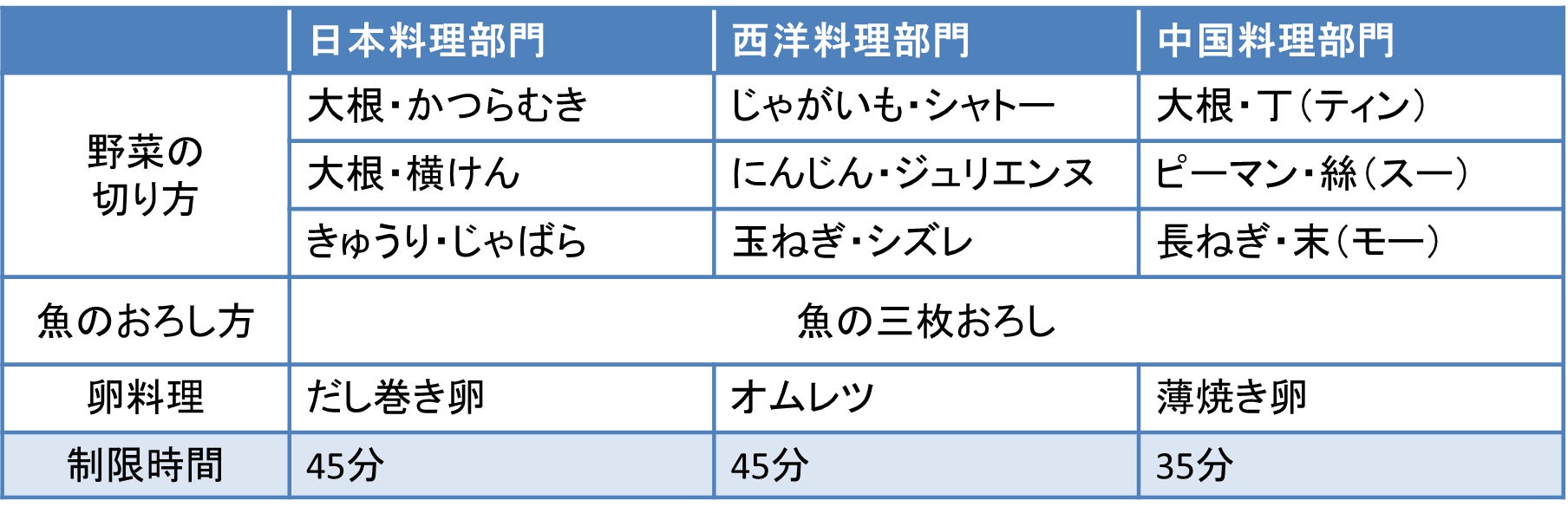 日本・西洋・中国の3料理部門のいずれかを選択し、学内選抜を経た者