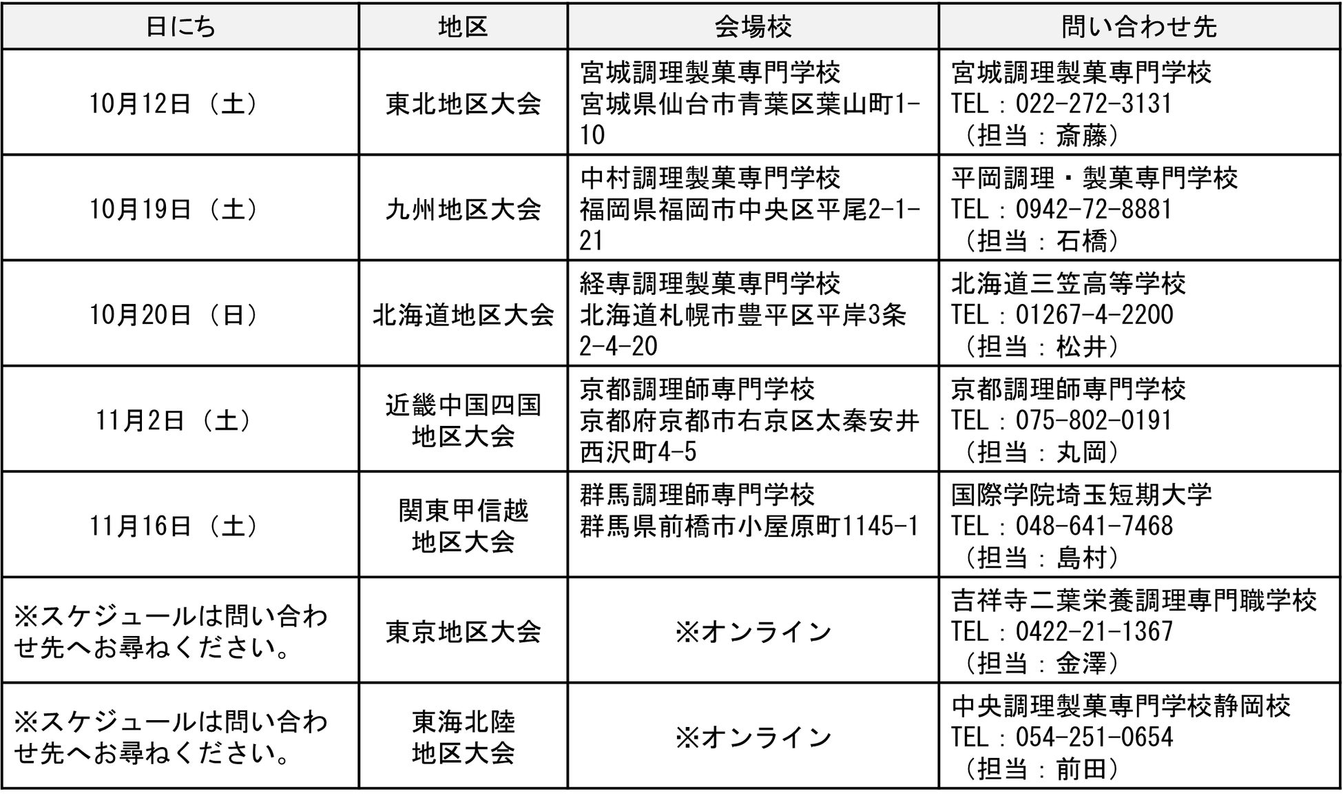 公益社団法人 全国調理師養成施設協会(会長:服部幸應、所在地:東京都渋谷区) は、2025年2月に行われる「第40回調理師養成施設調理技術コンクール」全国大会(決勝)への出場をかけた地区大会(予選)を全国各地区の調理師学校で10月12日(土)~11月16日(土)に開催します。