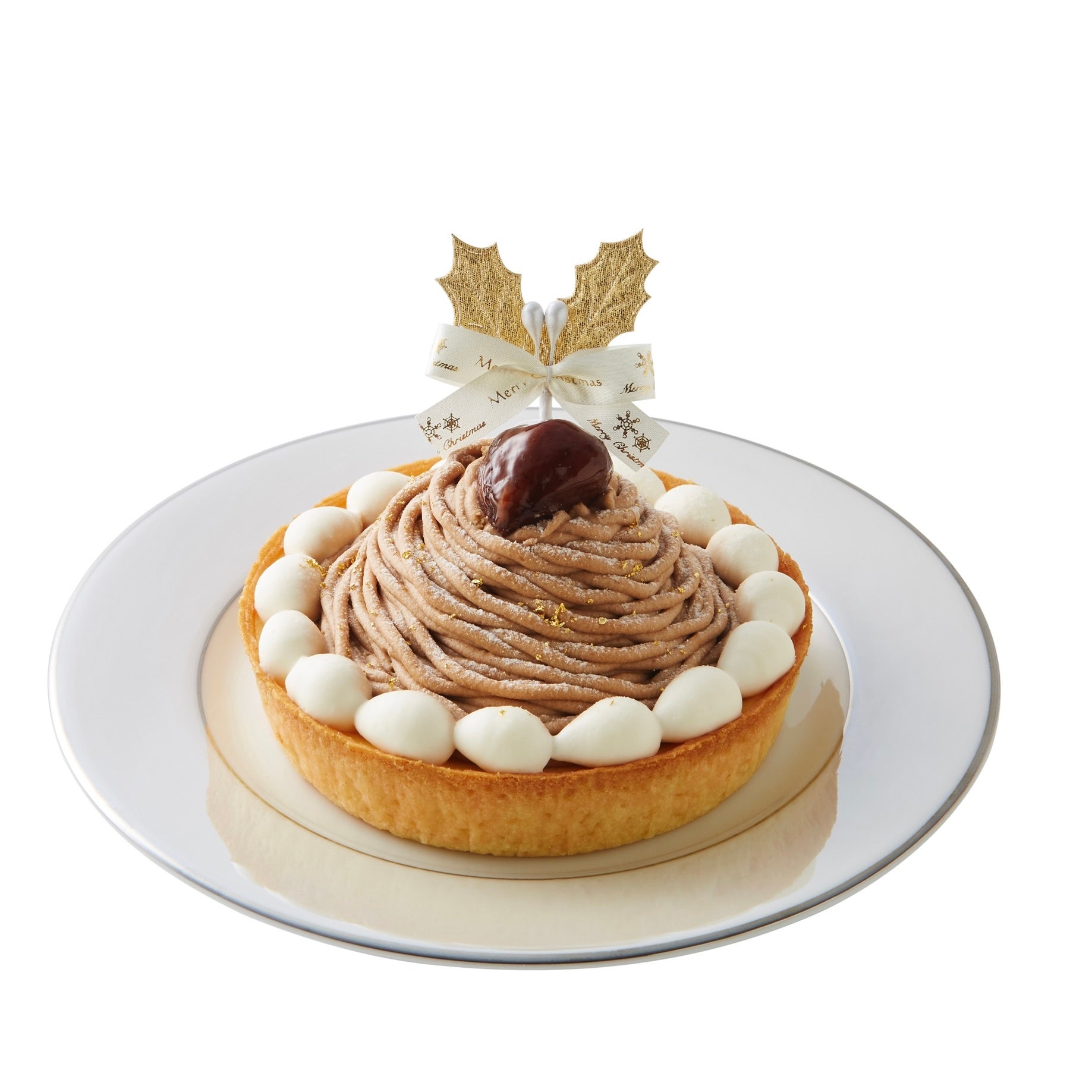 北海道根釧地区の生乳を使用したミルキーなマスカルポーネのチーズケーキの上に、モンブランをツリーに見立てた、風味豊かなマロンクリームが絞られたケーキ。渋皮付き栗と華やかな金箔がトッピングされています。モンブランとチーズケーキの2つの美味しさが楽しめます。(直径11.5cm×H7.2cm)