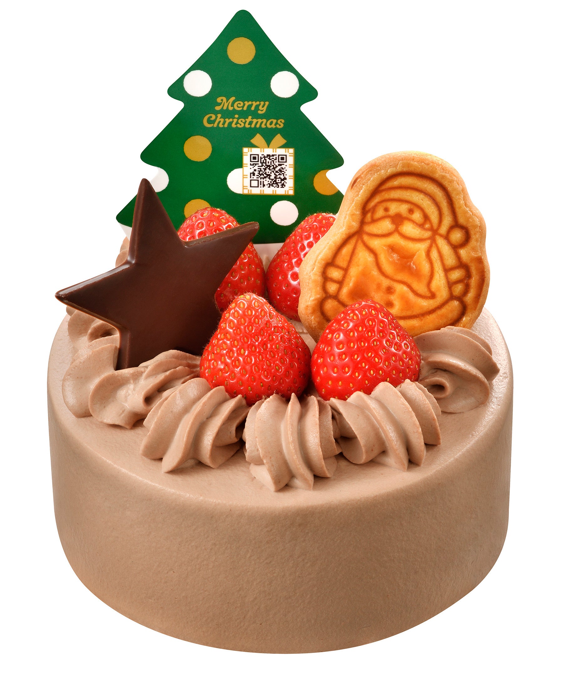 ココアスポンジにチョコレートガナッシュをサンドしたチョコレートケーキ。チョコレート生クリームにフレッシュないちごと大きな星のチョコレートがデコレーションされています。(直径12cm)