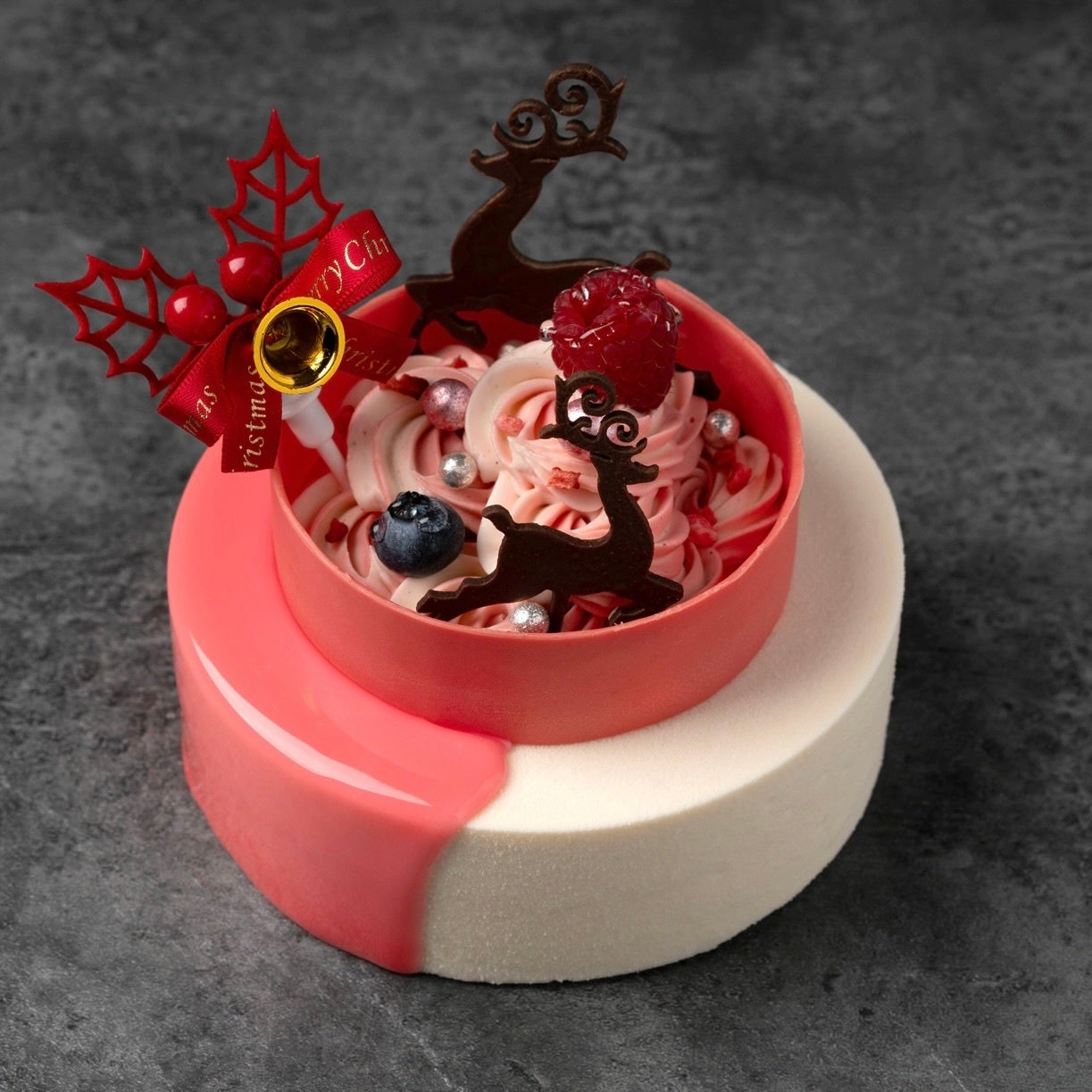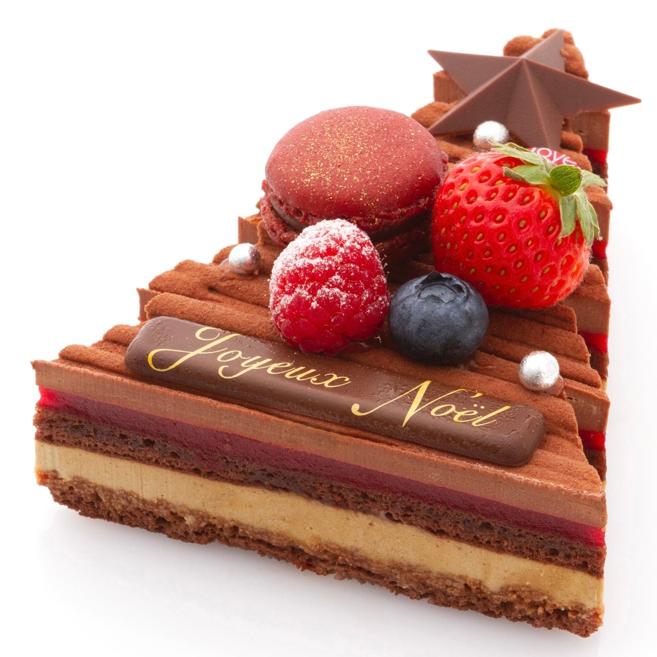 ショコラの味わいにアールグレイの香りとフランボワーズの酸味が溶け合う新作クリスマスケーキ。ショコラのクリームには、アールグレイの香り・フランボワーズの酸味と相性のいい、奥深いアロマと爽やかな余韻を併せ持つイタリア「ドモリ社」のショコラを使用。3つの味と香りが響き合う贅沢な一品です。