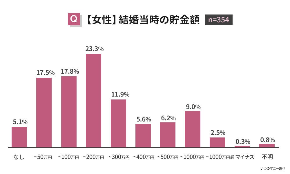 男女別に「結婚したときの貯金額」を聞いたところ、回答は以下のようになりました。